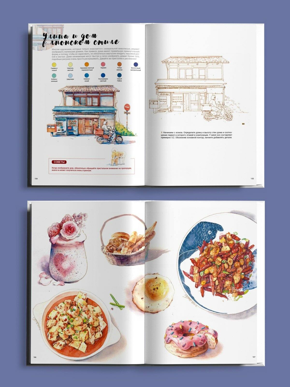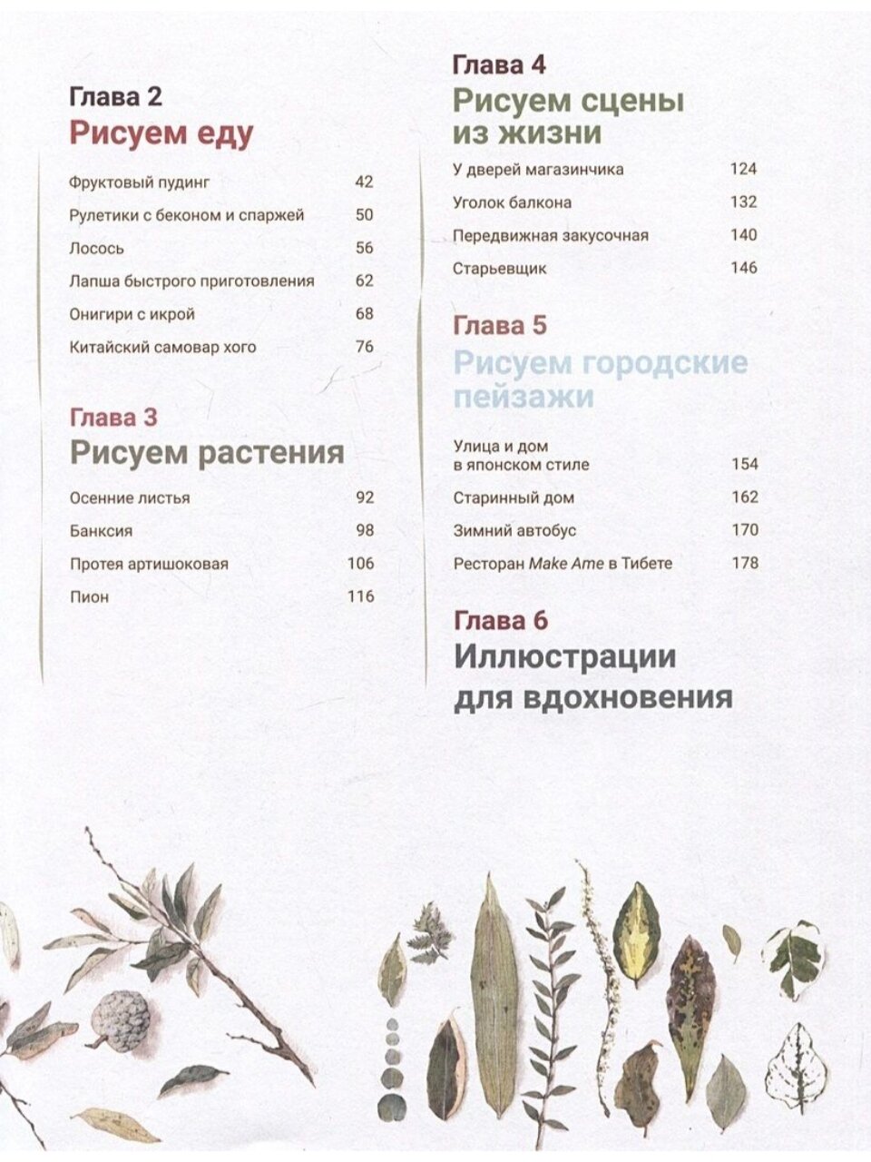 Мечтаете заняться рисованием, но не понимаете, с чего начать?Попробуйте себя в акварельной иллюстрации! Прочитав подробное руководство от китайской художницы Xiaohe, вы сможете сделать уверенные первые шаги в новом хобби. Под одной обложкой собраны 18 пошаговых уроков, вся необходимая новичку теория и множество практических советов.Благодаря этой книге вы:Узнаете все об инструментах и материалах для акварельной живописи.Научитесь строить перспективу и подбирать цвета.Освоите популярные техники акварельной иллюстрации.Нарисуете аппетитные гастрономические скетчи, красочные цветочные композиции, сцены из жизни и городские пейзажи.Получите заряд творческого вдохновения!Магия акварели в ваших руках!