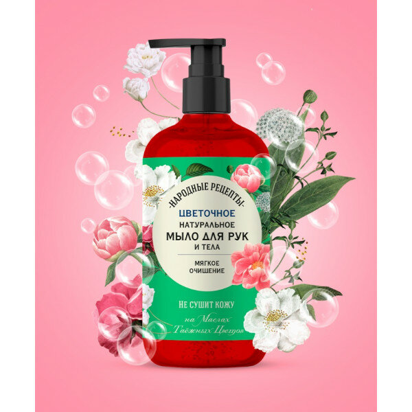 Мыло для рук и тела Народные рецепты Цветочное 500 мл