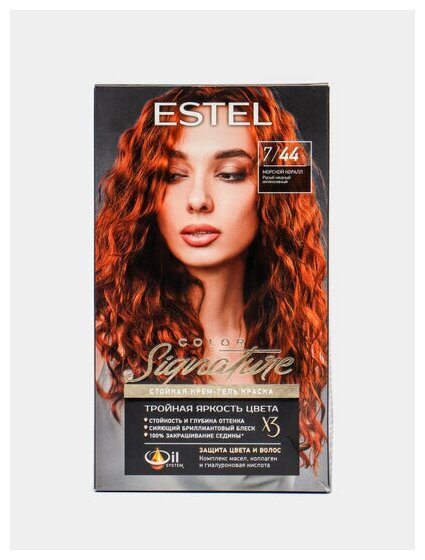 Крем-гель краска для волос ESTEL COLOR Signature результат сотрудничества науки и творчества экспертов лаборатории ESTEL и колористов. Профессиональная технология стойкого окрашивания, которая обеспечивает насыщенный и сияющий цвет от корней до кончиков. Вас удивит легкость применения крем-геля краска для волос ESTEL Signature с нежной текстурой и подарит вам стойкий, глубокий и сияющий цвет. Откройте для себя тройную Яркость цвета и блеск бриллиантов. Обогащена комплексом ценных масел, гиалуроновой кислотой ESTEL ES 6% и коллагеном. Придает яркий цвет и бриллиантовый блеск. Закрашивает седину. Обладает высокой стойкостью.
