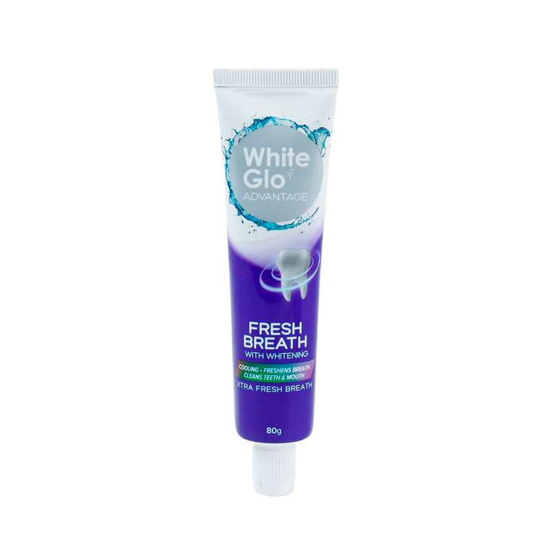Формула зубной пасты White Glo Advantage Свежее дыхание эффективно очищает и освежает полость рта, бережно отбеливает зубы. Бромелайн (экстракт ананаса) расщепляет налет в самых труднодоступных местах и делает зубы гладкими. Экстракт перечной мяты оказывает противовоспалительное и ухаживающее действие, способствует длительному и стойкому свежему дыханию.