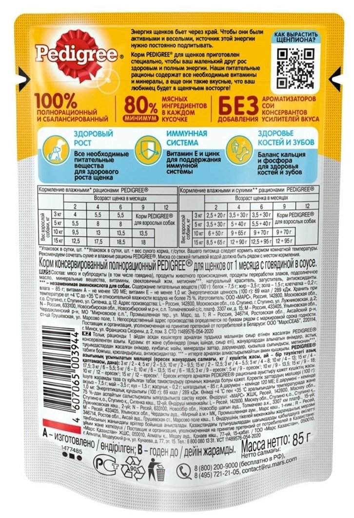 Pedigree Корм влажный (пауч) для щенков говядина в соусе 85 гр.