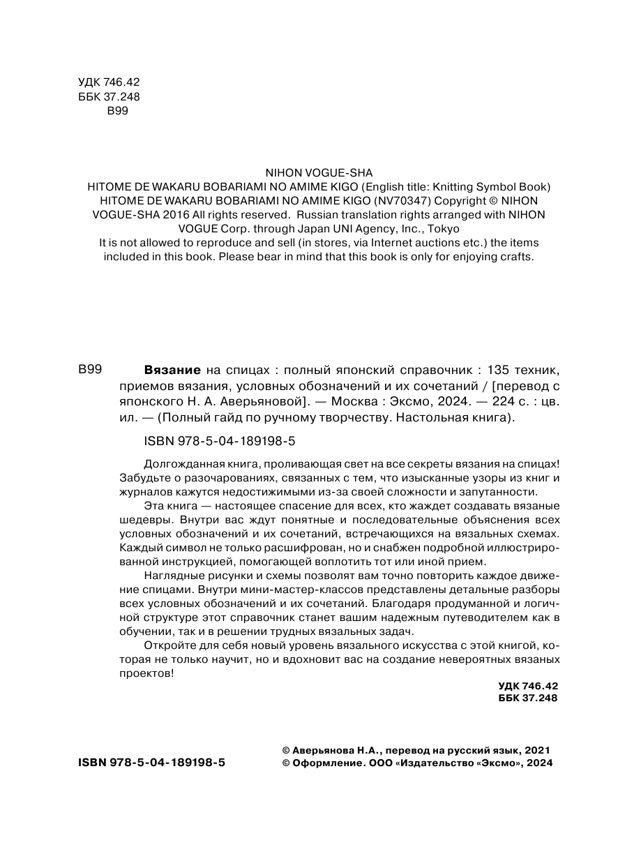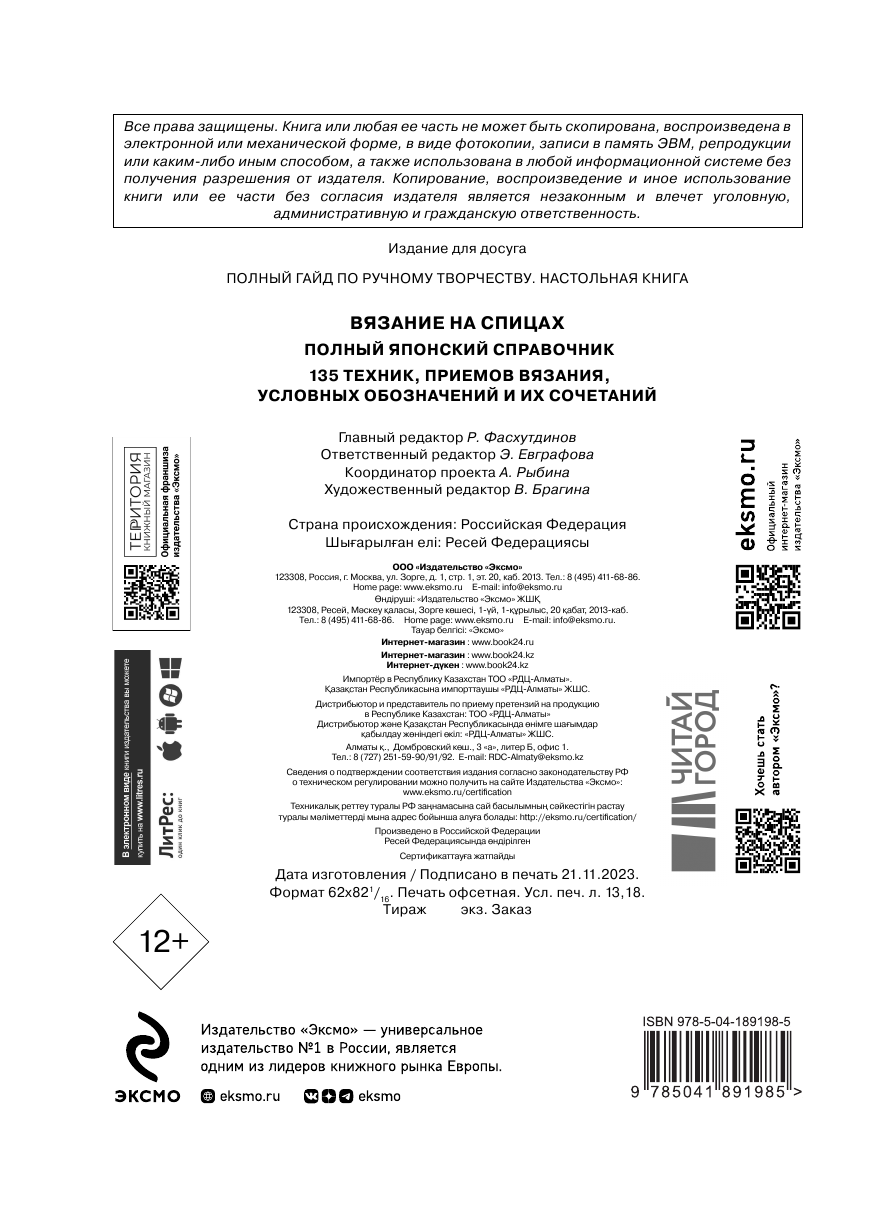 Вязание на спицах. Полный японский справочник. 135 техник приемов вязания условных обозначений (без автора); ООО "Издательство "Эксмо", 2024