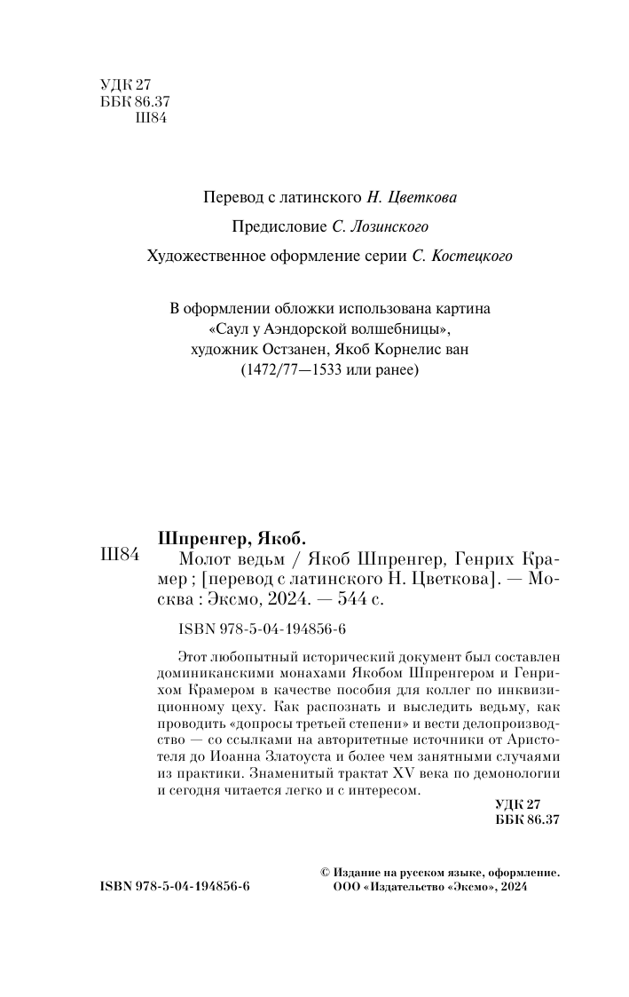 Книга: Молот ведьм (Якоб Шпренгер, Генрих Крамер); Эксмо, Редакция 1, 2024