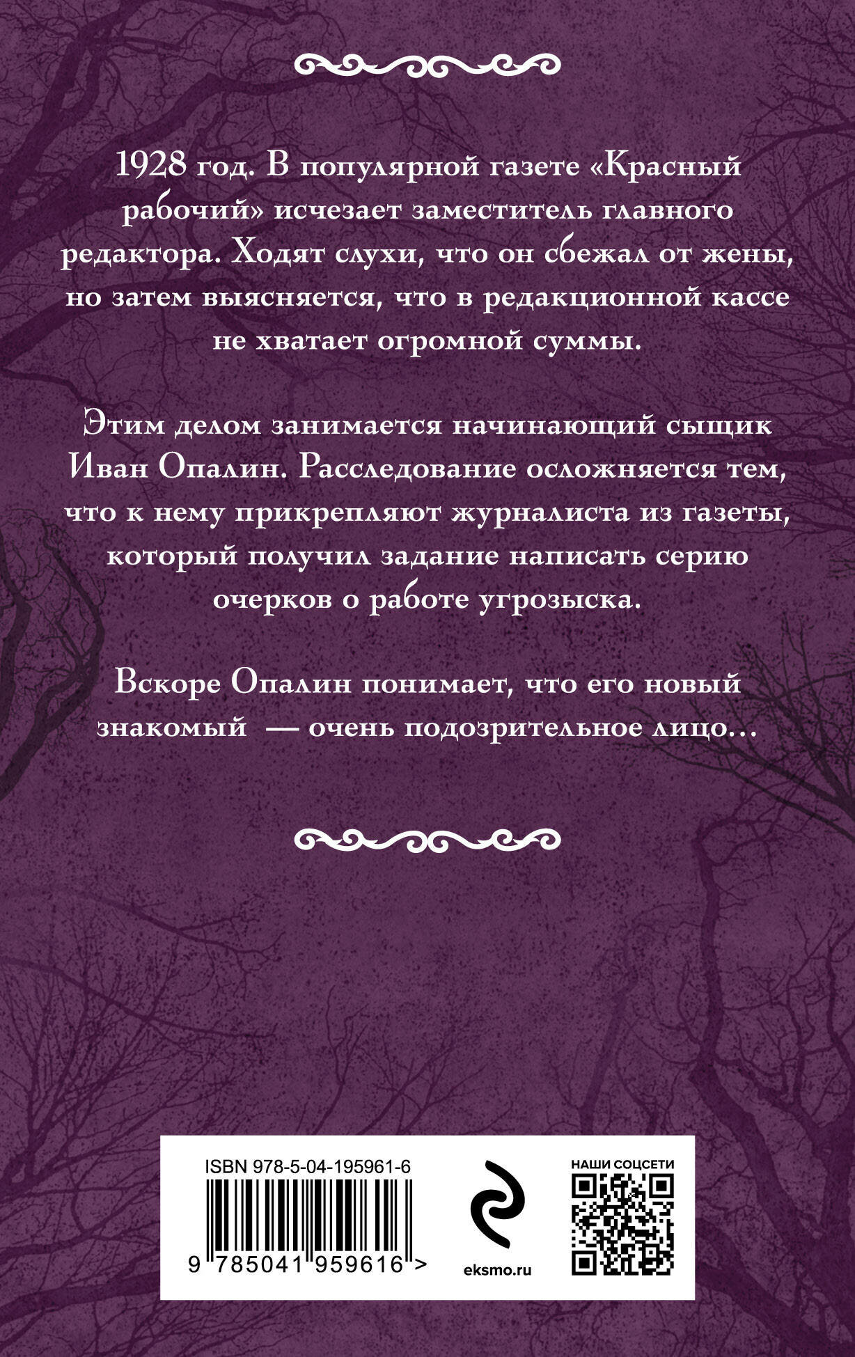 1928 год. В популярной газете «Красный рабочий» исчезает заместитель главного редактора. Ходят слухи, что он сбежал от жены, но затем выясняется, что в редакционной кассе не хватает огромной суммы. Этим делом занимается начинающий сыщик Иван Опалин. Расследование осложняется тем, что к нему прикрепляют журналиста из газеты, который получил задание написать серию очерков о работе угрозыска. Вскоре Опалин понимает, что его новый знакомый - очень подозрительное лицо. Валерия Вербинина - мастер исторического детектива, автор более 50 романов в этом жанре. В своем новом цикле «Детективное ретро» она блестяще передает реалии жизни Советской России 20-х-30-х годов прошлого века, на фоне которых развивается виртуозно закрученная интрига. Следствие ведет сыщик МУРа Иван Опалин.
