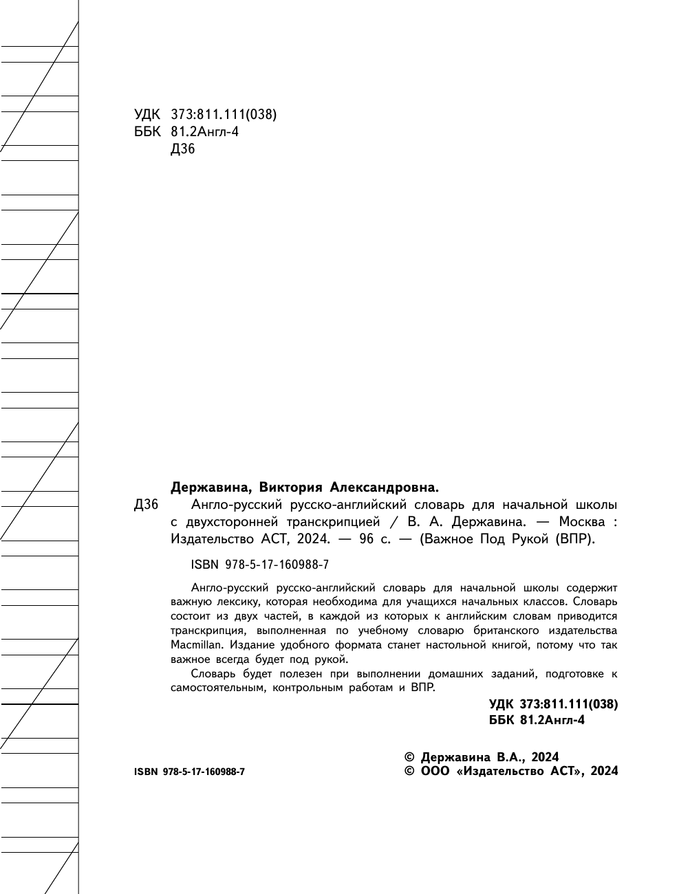 Англо-русский русско-английский словарь для начальной школы с двухсторонней транскрипцией (Виктория Александровна Державина); АСТ, 2024