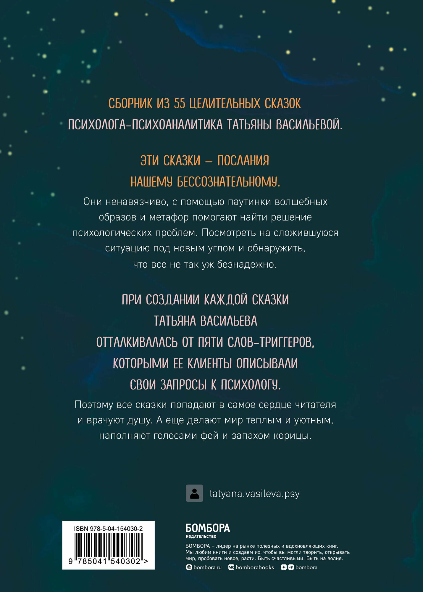 Эта книга — сборник из 55 целительных сказок, написанная психологом-психоаналитиком Татьяной Васильевой. Универсальные истории, небольшие, но многогранные, как призма, направляют фокус внимания, неожиданно превращаясь в ваш личный фонарик. На что укажет свет сегодня? А через месяц? Или спустя год? Проверить можно только самостоятельно.