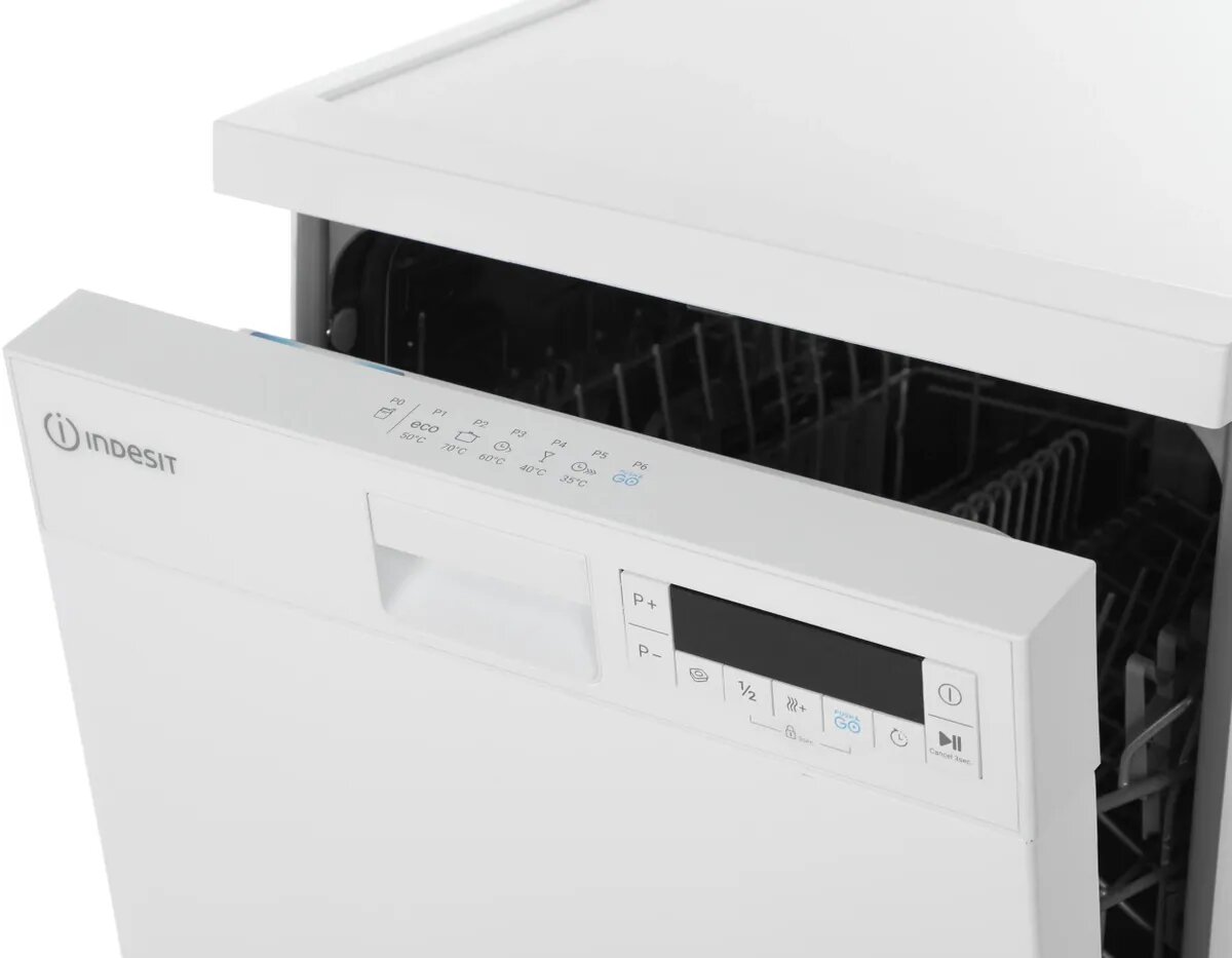 Посудомоечная машина Indesit с шестью программами работы может помыть до 10 комплектов посуды за одну загрузку. А значит, она имеет все шансы стать вашим незаменимым помощником в быту, освободив от рутинных дел. Компактные габариты – глубина 60 см, ширина 44,8 см и высота 85 см – позволяют установить технику даже на небольшую кухню. Посудомоечная машина Indesit рассчитана на семью из 4-6 человек с детьми. После совместного ужина вся грязная посуда без проблем помещается в рабочую камеру с 2 корзинами. Верхний ящик легко регулируется по высоте, благодаря чему в него можно положить большие блюда нестандартного размера. Дополнительно предусмотрены отдельные полки для чашек со стаканами и удобные складные держатели тарелок. Функции половинной загрузки, быстрой помывки и экстра сушки делают посудомоечную машину Indesit максимально удобной для ежедневного использования, даже если посуды накопилось не слишком много. При этом класс энергопотребления А позволит вам не беспокоиться о счетах за электричество. Изделие оборудовано системой смягчения воды для снижения жесткости поступающей в него воды. Данная система смягчает водопроводную воду до уровня, который обеспечит надлежащее качество мытья посуды.