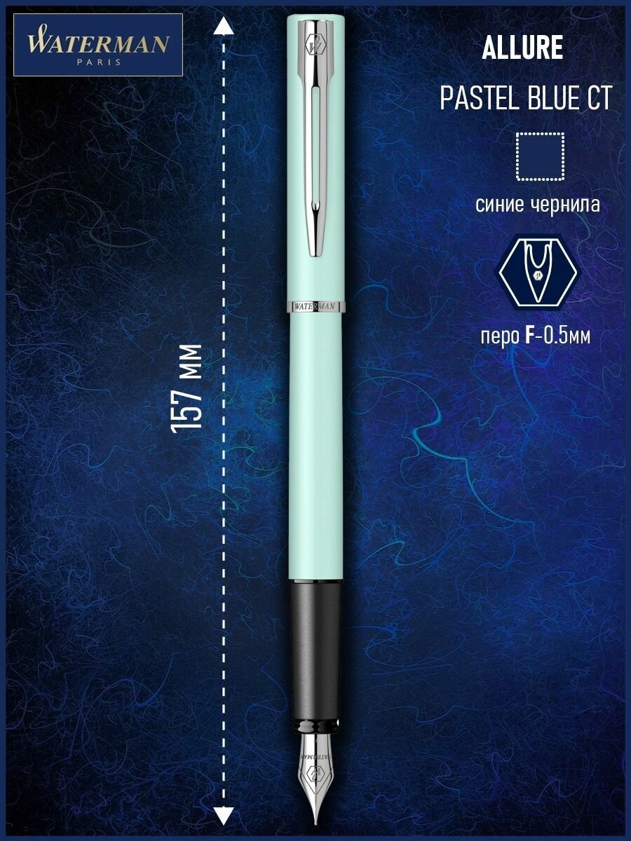 Выполненная в классическом дизайне, коллекция GRADUATE бесспорно функциональна и современна. Прочная конструкция и современный дизайн, вне сомнения, понравится тем, кто нуждается в надежных и функциональных письменных принадлежностях, отличающихся изяществом стиля и престижностью. Эти пишущие инструменты идеальны для ежедневного использования, а также в качестве подарка. Шариковая ручка из новой коллекции Allure Pastel. Корпус элегантной недорогой шариковой ручки выполнен из ювелирной латуни и покрыт многослойным пастельным лаком, отдельные детали дизайна покрыты хромом. Механизм кнопочный нажимного действия. Стержень синий. Толщина пишущего узла F. Длина ручки - 13,9 см, диаметр 1,2см. Комплектация - 1 стержень в ручке, фирменная подарочная коробка. В ручке используются стандартные шариковые стержни Waterman. Производство Франция. С марта 2020 поступают новые подарочные коробки без листовок с гарантийным талоном. Основным документом при обращении в сервисный центр будет чек.