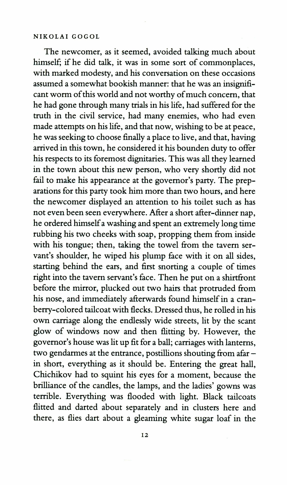 Since its publication in 1842, Dead Souls has been celebrated as a supremely realistic portrait of provincial Russian life and as a splendidly exaggerated tale; as a paean to the Russian spirit and as a remorseless satire of imperial Russian venality, vulgarity, and pomp. As Gogol's wily antihero, Chichikov, combs the back country wheeling and dealing for "dead souls" - deceased serfs who still represent money to anyone sharp enough to trade in them - we are introduced to a Dickensian cast of peasants, landowners, and conniving petty officials, few of whom can resist the seductive illogic of Chichikov's proposition. This lively, idiomatic English version by the award-winning translators Richard Pevear and Larissa Volokhonsky makes accessible the full extent of the novel's lyricism, sulphurous humour, and delight in human oddity and error.