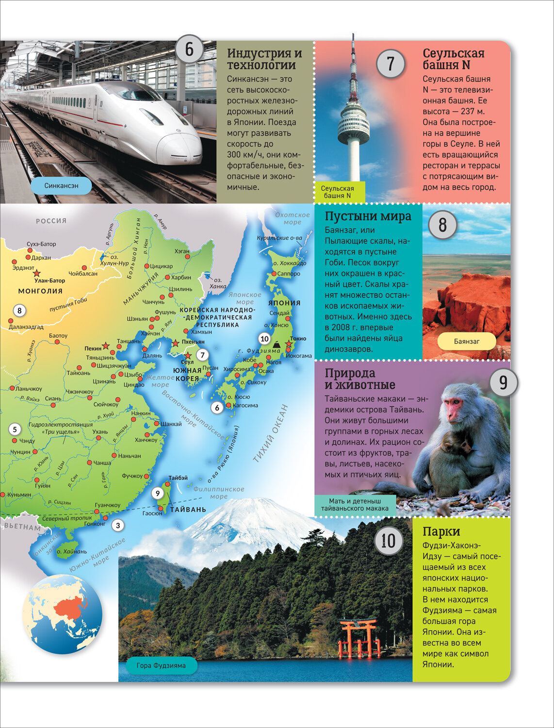 Этот атлас мира составлен по континентам. На каждой странице атласа вы найдете карты, фотографии и информацию о людях, городах, природе и достопримечательностях, которые есть в каждой части мира. Мы приглашаем вас в путешествие по странам и континентам.
