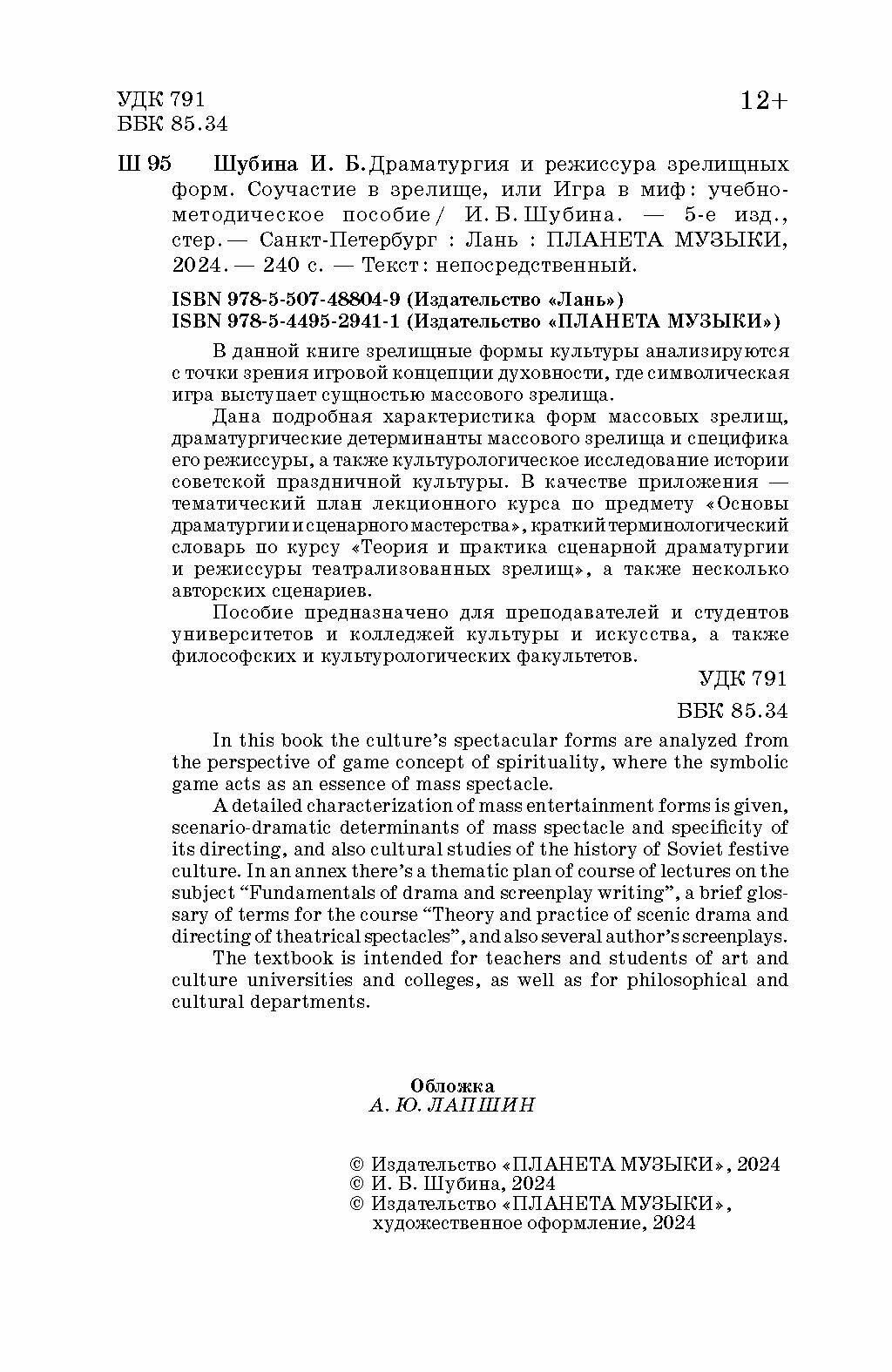 Драматургия и режиссура зрелищных форм. Соучастие в зрелище или Игра в миф (Румянцева Ирина Борисовна); Планета Музыки, 2024