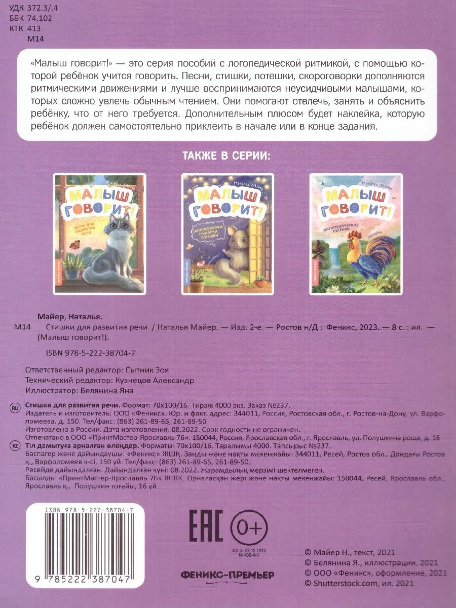 Книга: Стишки для развития речи (Майер Наталья Андреевна); Феникс, 2023