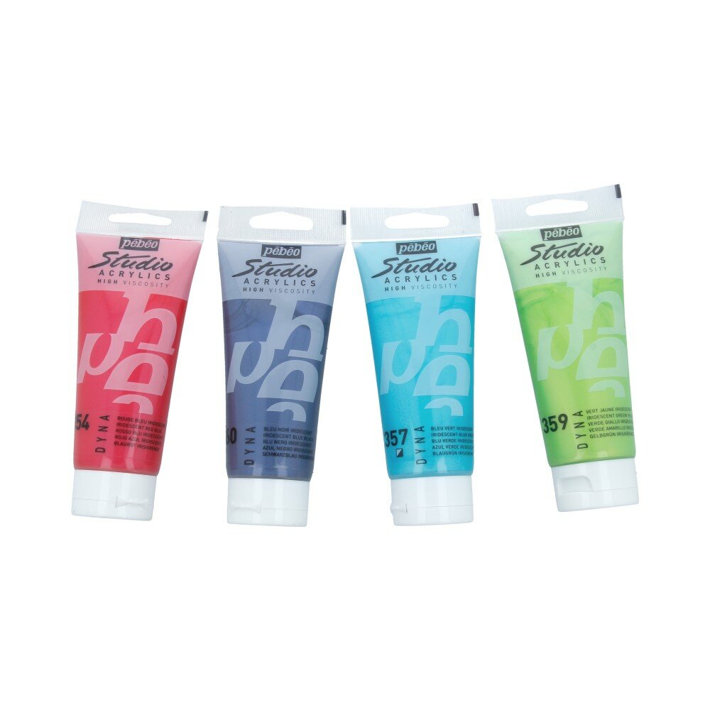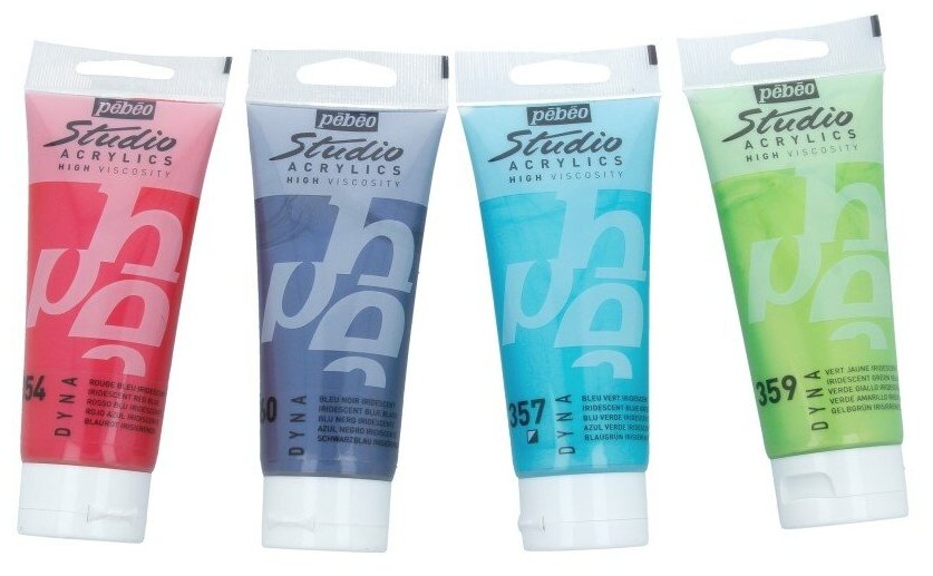 Акрил STUDIO представлен обширной цветовой палитрой из 63 цветов, в которую, помимо основных цветов вошли иридисцентные, металлические и флуоресцентные оттенки. Доступен поштучно в тубах по 100 миллилитров и в наборах различной комплектации.