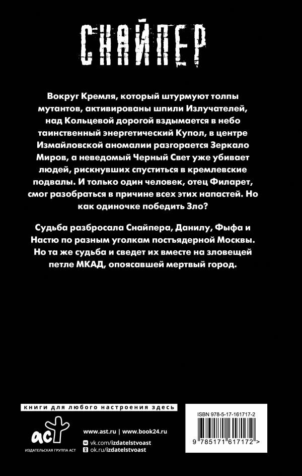 Вокруг Кремля, который штурмуют толпы мутантов, активированы шпили Излучателей, над Кольцевой дорогой вздымается в небо таинственный энергетический Купол, в центре Измайловской аномалии разгорается Зеркало Миров, а неведомый Черный Свет уже убивает людей, рискнувших спуститься в кремлевские подвалы. И только один человек, отец Филарет, смог разобраться в причине всех этих напастей. Но как одиночке победить Зло? Судьба разбросала Снайпера, Данилу, Фыфа и Настю по разным уголкам постъядерной Москвы. Но та же судьба и сведет их вместе на зловещей петле МКАД, опоясавшей мертвый город.