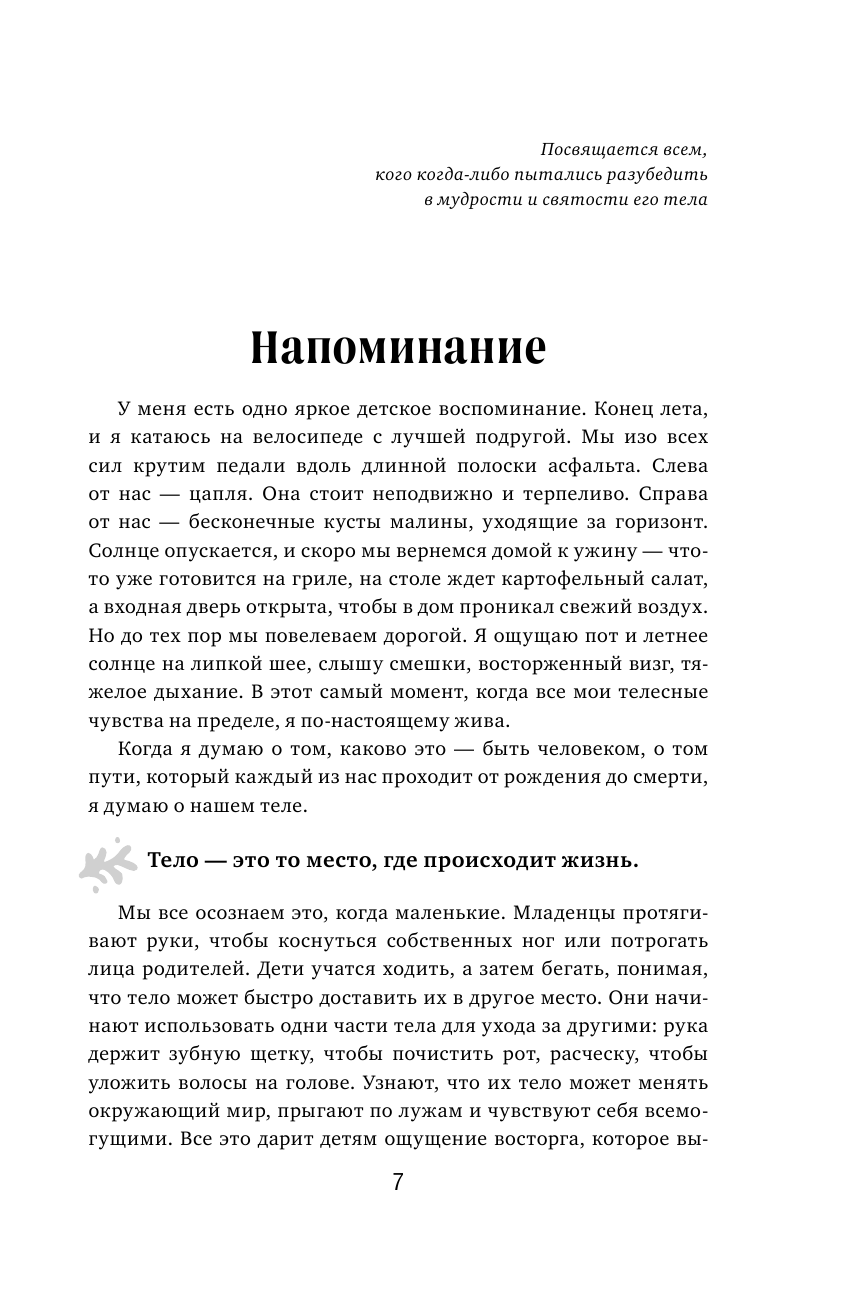 Как проработать нездоровые представления о теле и выстроить с ним гармоничные отношения? Благодаря ему мы проживаем множество прекрасных моментов, чувствуем удовольствие, энергию и связь с миром. Иногда оно работает на пределе, получает травмы, испытывает боль и стресс. И все же ощущение собственного тела и скрытой в нем мудрости — это то, без чего невозможно представить здоровую и благополучную личность. Автор этой книги, психотерапевт Хиллари Макбрайд, делится личным опытом борьбы с расстройством пищевого поведения, а также приводит истории своих пациентов. Она предлагает под разными углами взглянуть на отношения с телом, сделать их более гармоничными и проработать моменты, мешающие этой гармонии.