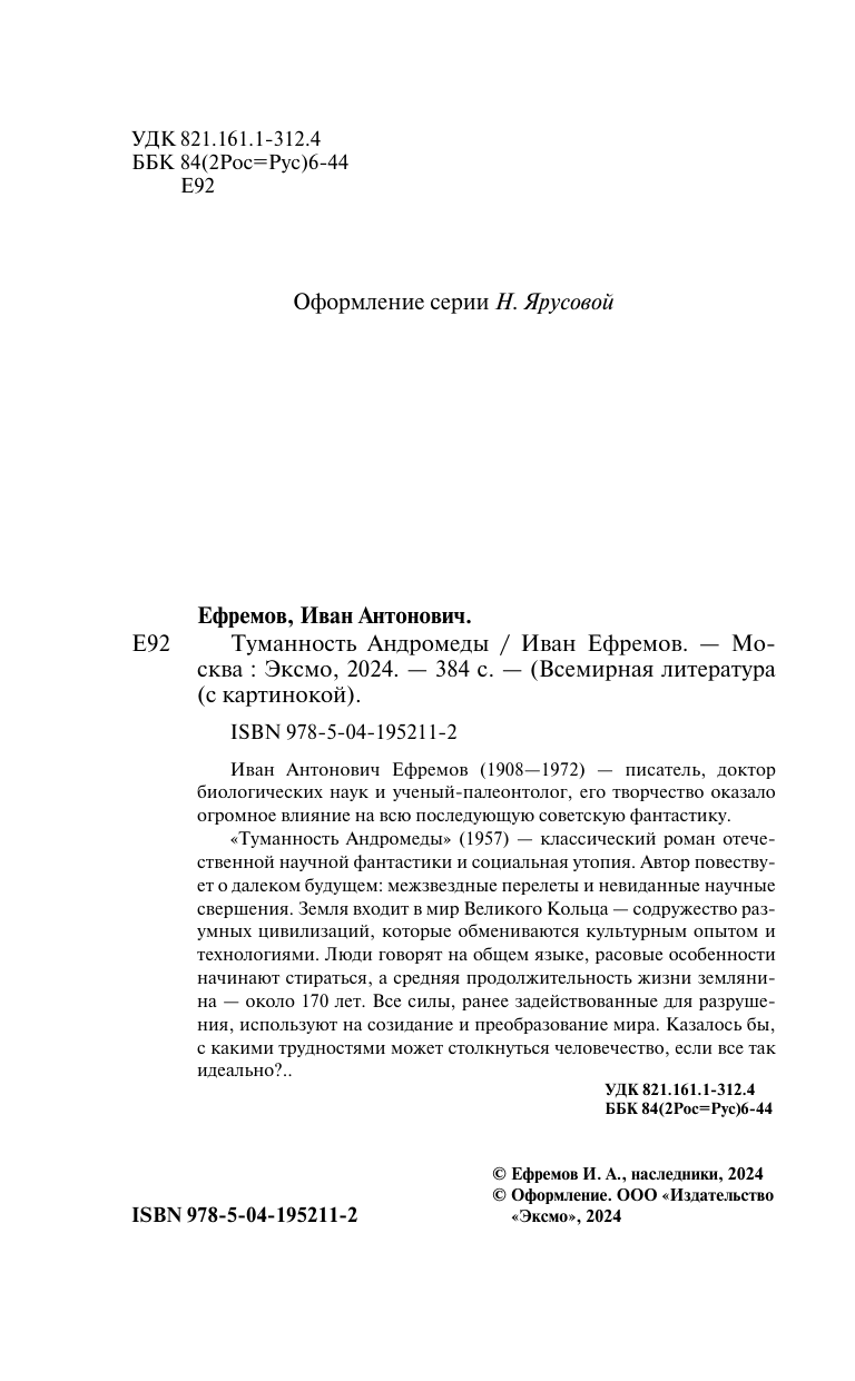 Книга: Туманность Андромеды (Иван Антонович Ефремов); Эксмо, 2024