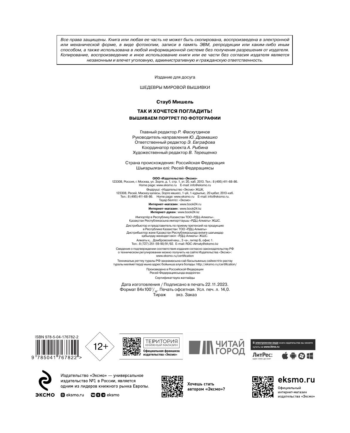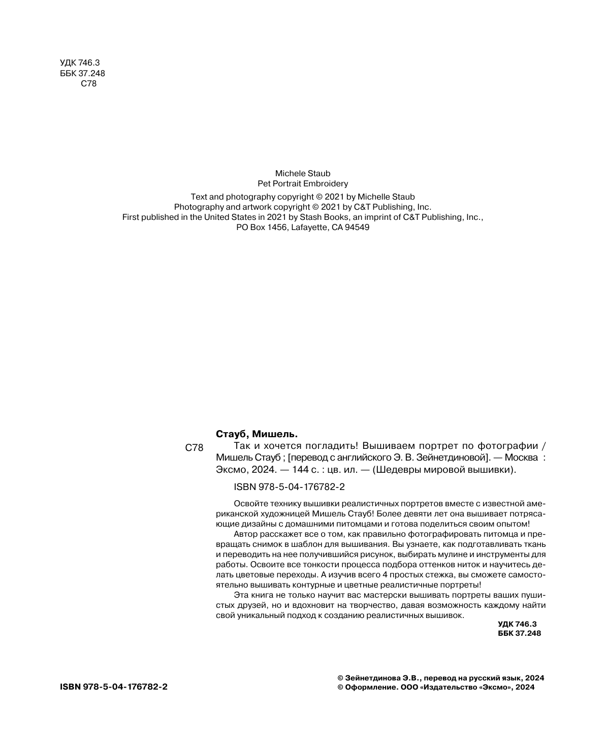 Так и хочется погладить! Вышиваем портрет по фотографии (Стауб М.); ООО "Издательство "Эксмо", 2024