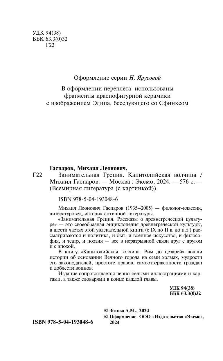 Занимательная Греция. Капитолийская волчица (Гаспаров Михаил Леонович); Эксмо, 2025