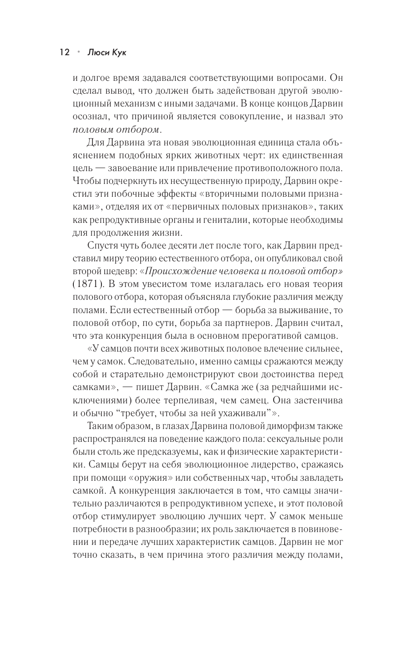 Как патриархальная культура повлияла на учение о женском поле? Почему быть женщиной значит оставаться неудачницей? Со времен Чарльза Дарвина биологи-эволюционисты были убеждены, что самцы в животном царстве куда интереснее: они властны и беспорядочны в связях, тогда как самки скучны, пассивны и преданны. В этой книге вы прочтете новую историю. Исследуя однополые пары самок альбатросов, которые выращивают птенцов, кровожадных матерей-сурикатов или титаническую битву полов, которую ведут утки, автор показывает новую эволюционную биологию, в которой самки могут быть такими же динамичными и успешными, как и любой самец. Это жестокий, забавный и революционный взгляд на королев животного царства, который поразит вас своей сенсационностью и реалистичностью.