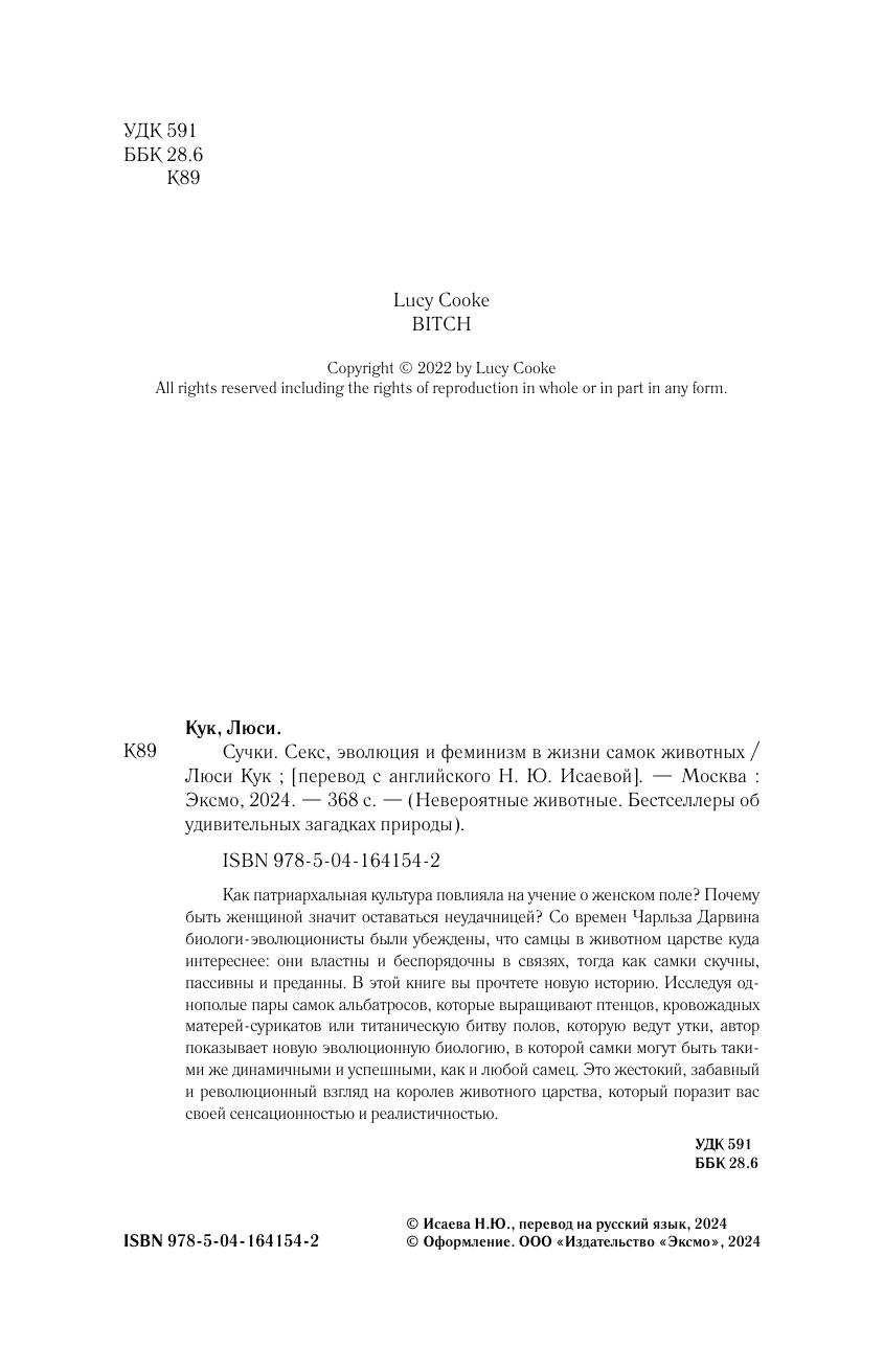 Сучки. Секс эволюция и феминизм в жизни самок животных (Кук Люси); ООО "Издательство "Эксмо", 2024