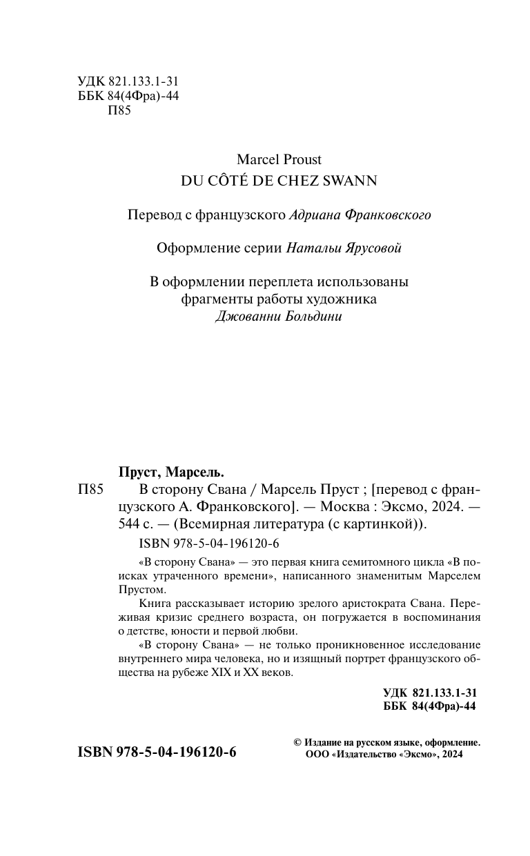 Книга: В сторону Свана (Марсель Пруст); Эксмо, Редакция 1, 2024