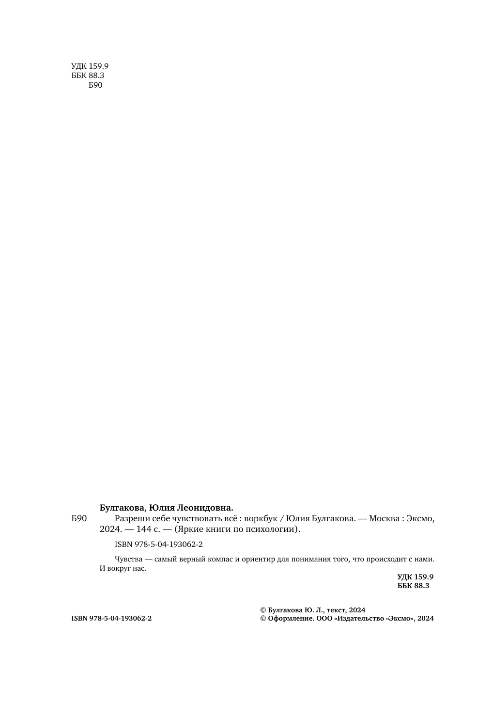 Разреши себе чувствовать всё. Воркбук (Булгакова Юлия Леонидовна); ООО "Издательство "Эксмо", 2024