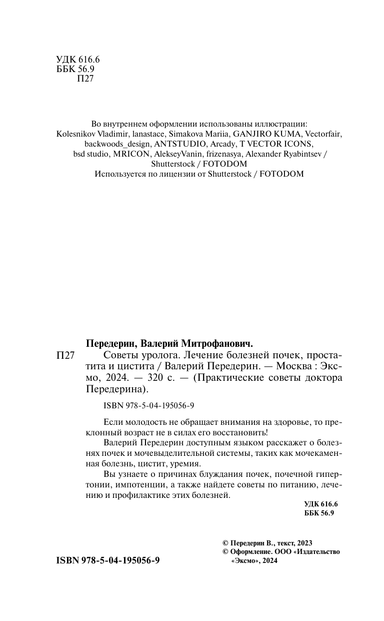 Советы уролога. Лечение болезней почек простатита и цистита (Передерин Валерий Митрофанович); ООО "Издательство "Эксмо", 2024