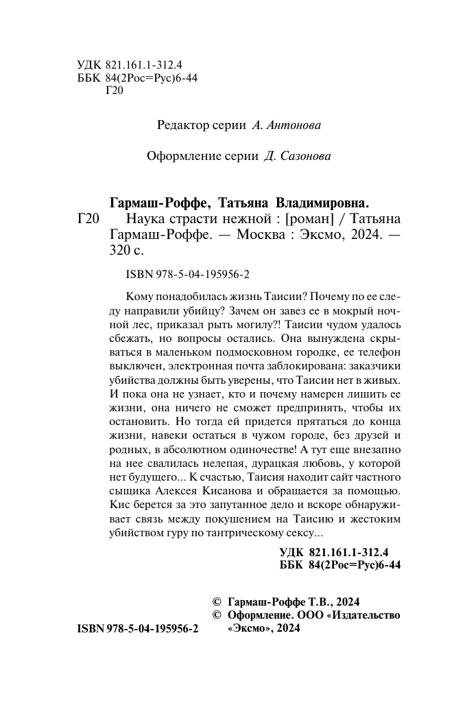 | Серия | Искусство детектива. Романы Т. Гармаш-Роффе. Новое оформление |