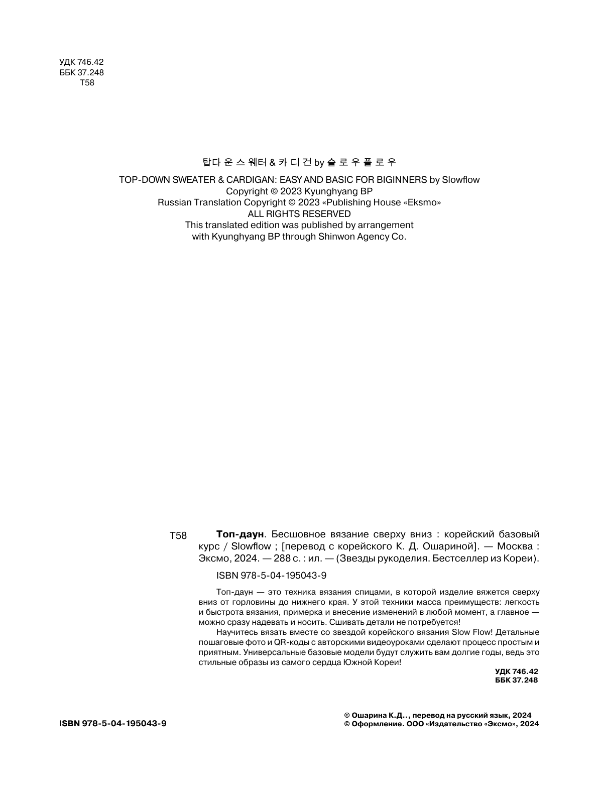 Топ-даун. Бесшовное вязание сверху вниз. Корейский базовый курс (Slowflow); ООО "Издательство "Эксмо", 2024
