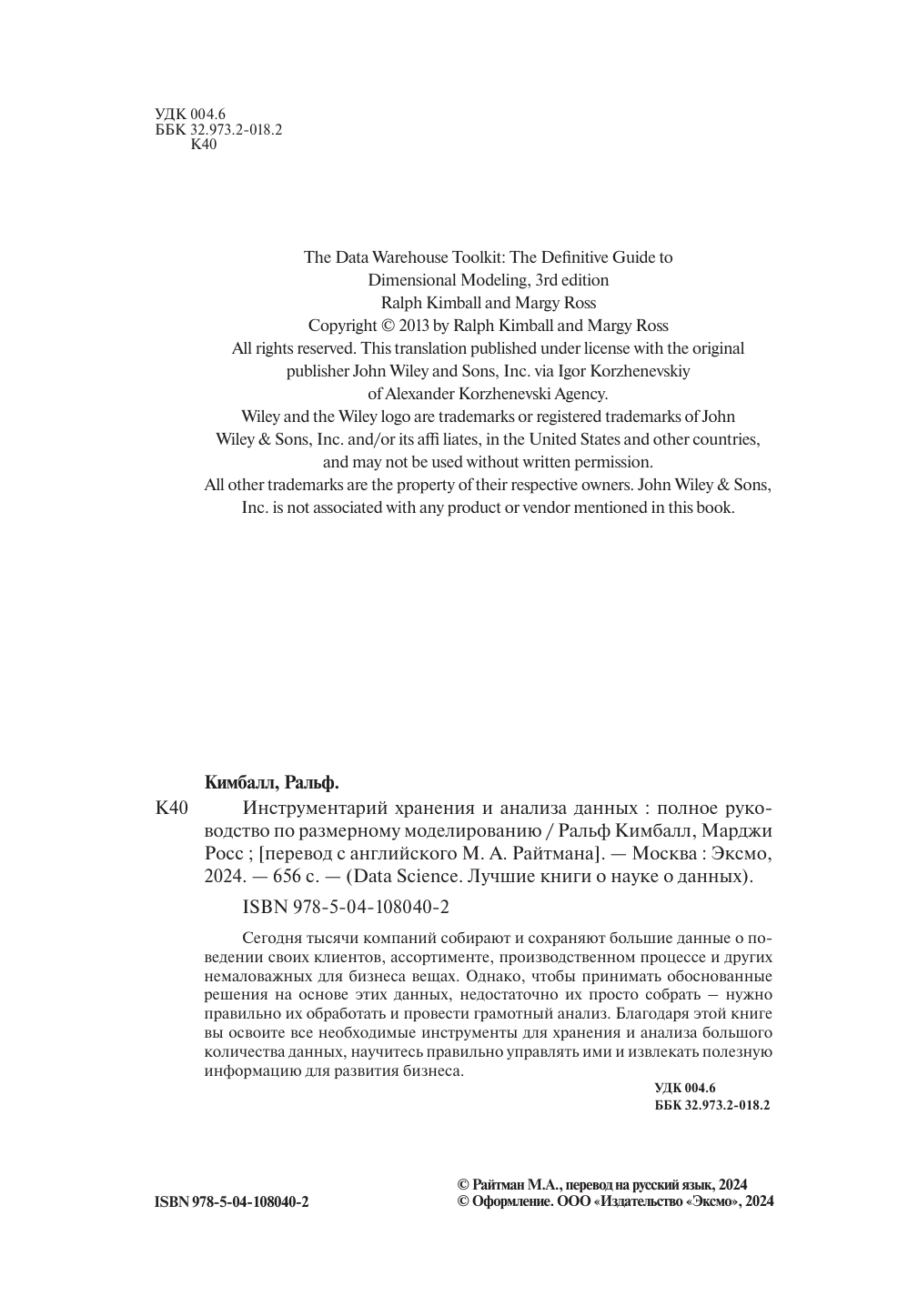 Инструментарий хранения и анализа данных. Полное руководство по размерному моделированию (Росс Марджи, Кимбалл Ральф); ООО "Издательство "Эксмо", 2024