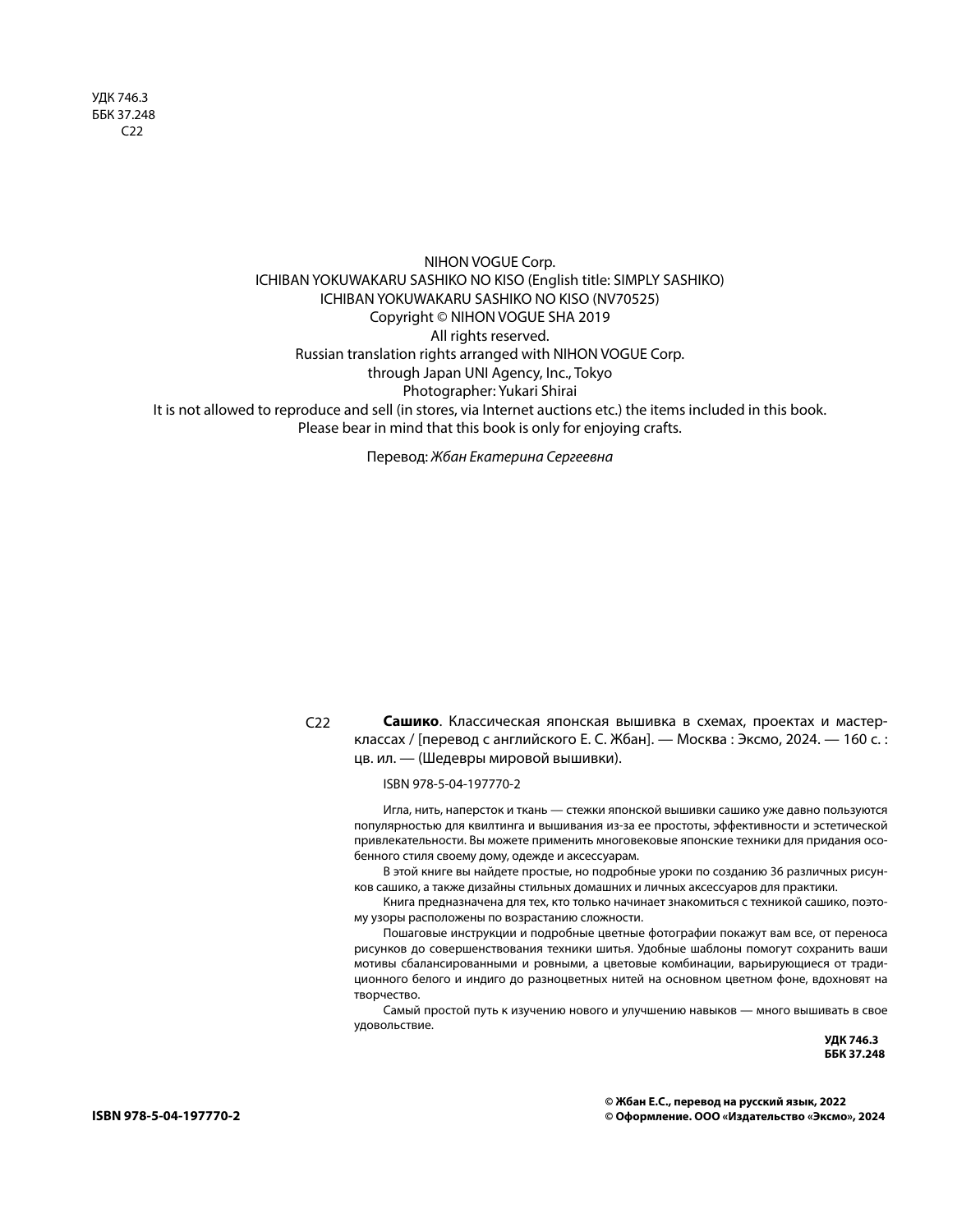 Сашико. Классическая японская вышивка в схемах проектах и мастер-классах (мягкая обложка) (NIHON VOGUE Corp.); Эксмо, 2024