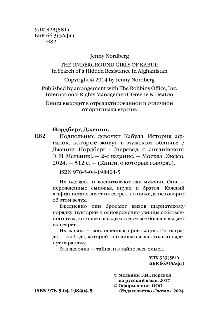 Подпольные девочки Кабула. История афганок которые живут в мужском обличье. 2-е издание (Нордберг Дженни); ООО "Издательство "Эксмо", 2024