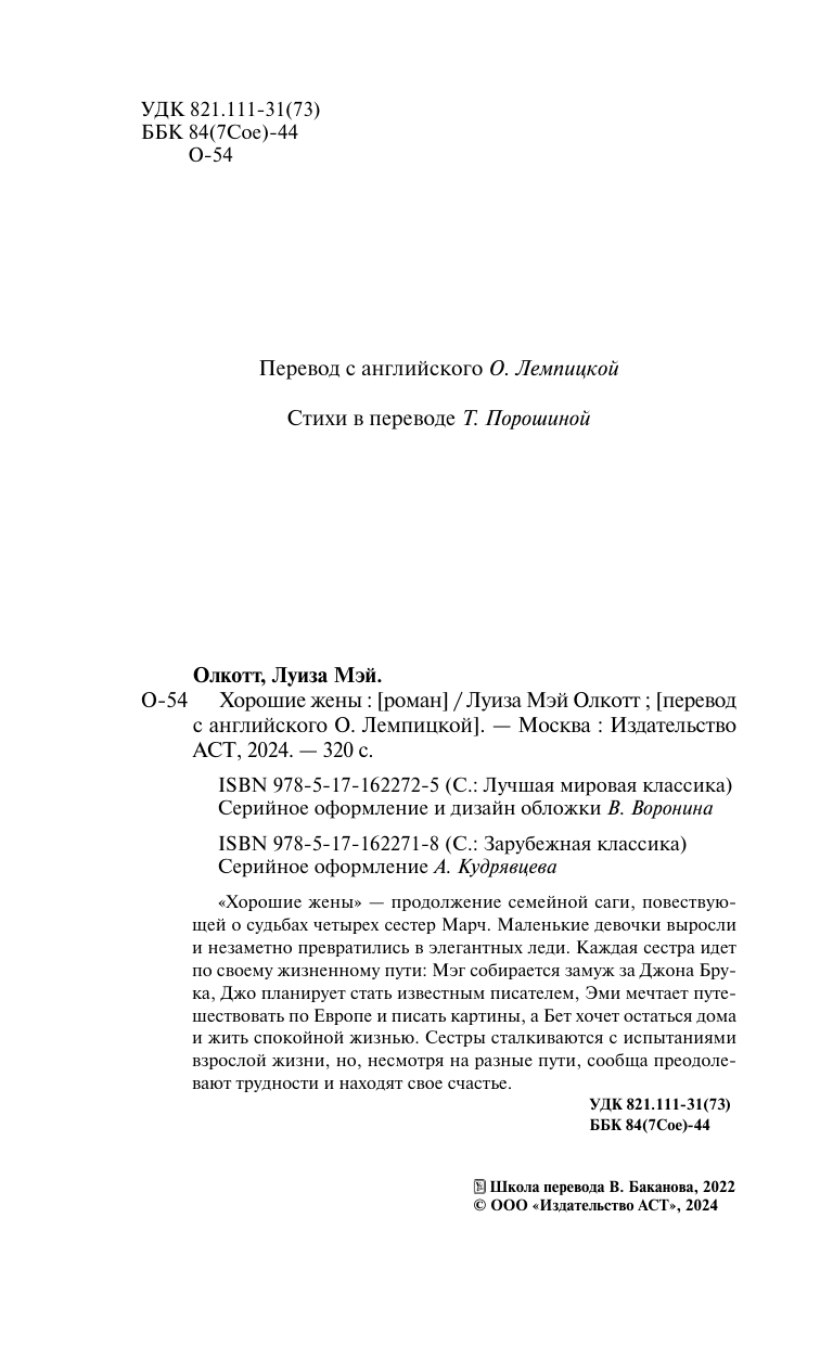 Хорошие жены (новый перевод) (Луиза Мэй Олкотт); АСТ, Neoclassic, 2024