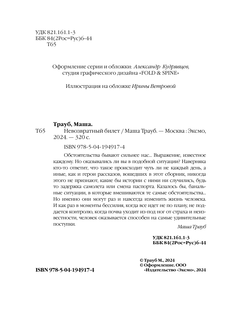 Книга: Невозвратный билет (Маша Трауб); Эксмо, Редакция 1, 2024