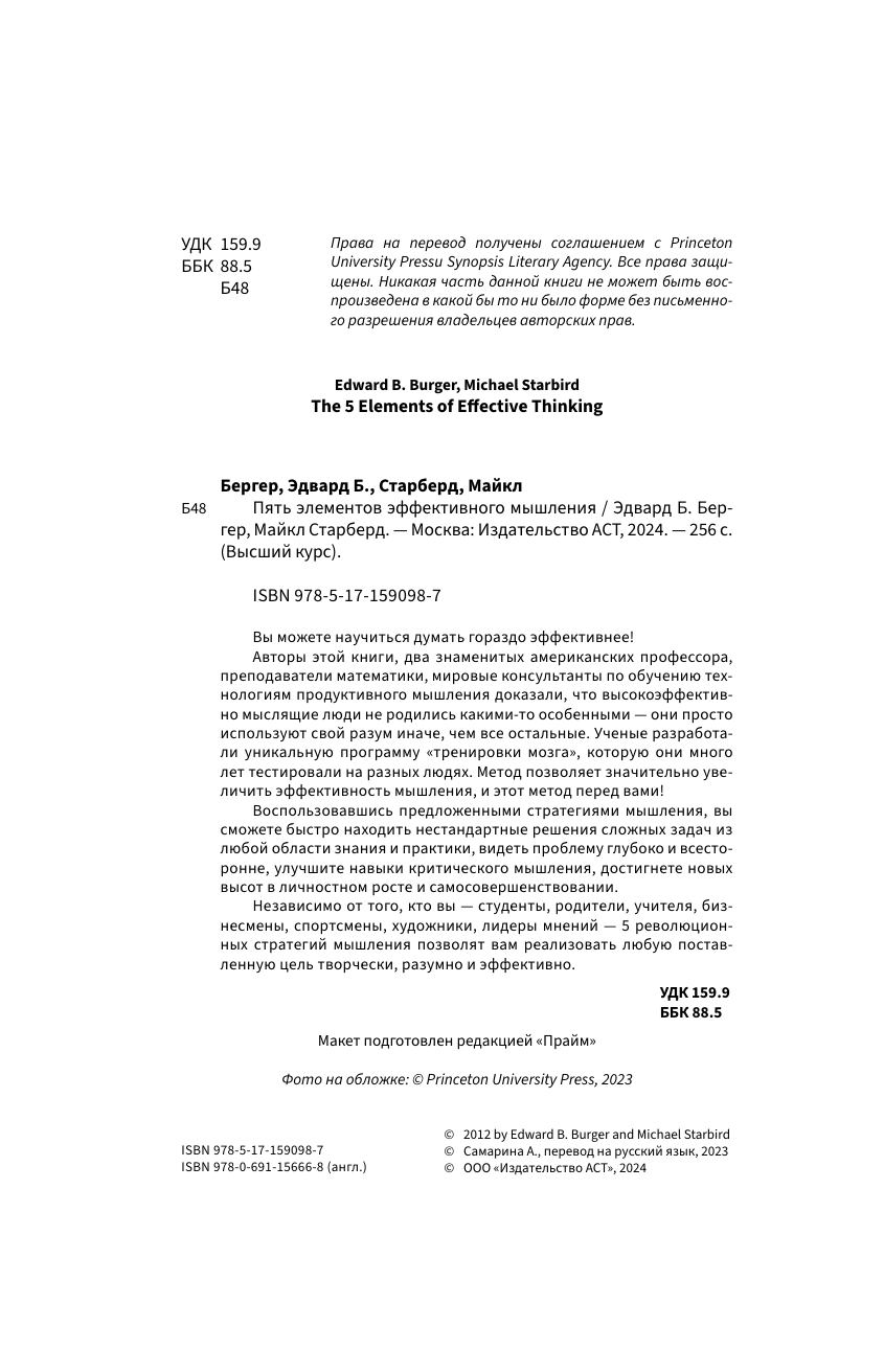 Пять элементов эффективного мышления (Эдвард Б. Бергер, Майкл Старберд М); АСТ, 2024