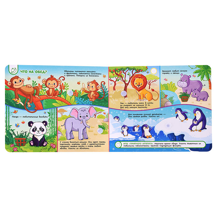 Книжка с липучками «В зоопарке» — это яркие иллюстрации и интересные задания!