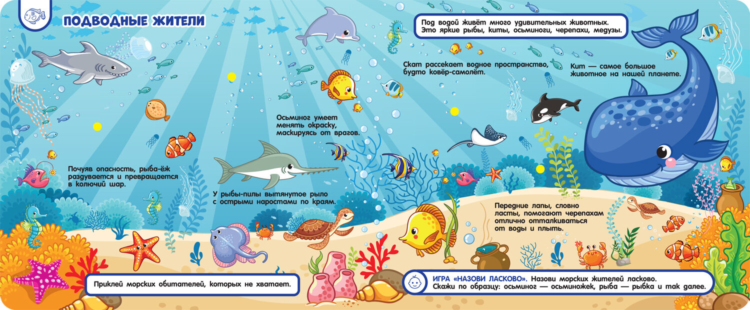 Его ждёт конверт с фигурками на липучках, для каждой из которых нужно найти место на страницах.