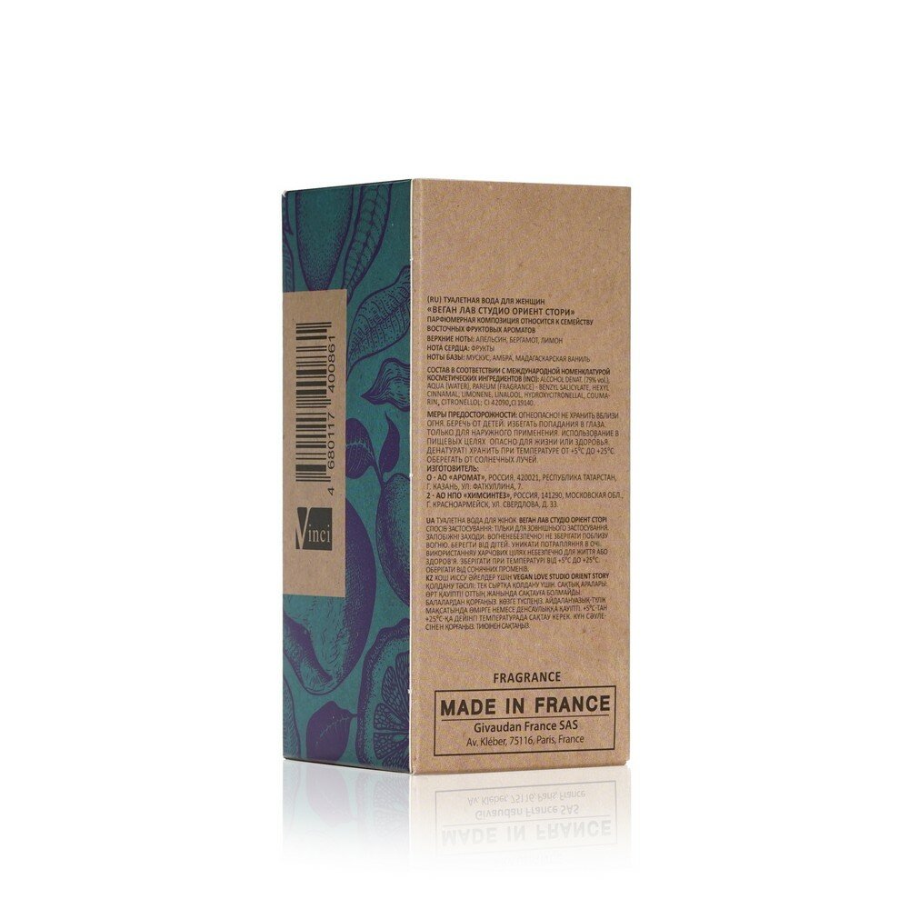 Туалетная вода Vegan Love Studio Orient Story подходит для женщин. Принадлежит к группе восточные. Верхние ноты образуют апельсин, бергамот и лимон. В сердце — фруктовые ноты. В шлейфе звучат ваниль, амбра и мускус.Способ применения: распылить на кожу с расстояния 10–15 сантиметров.