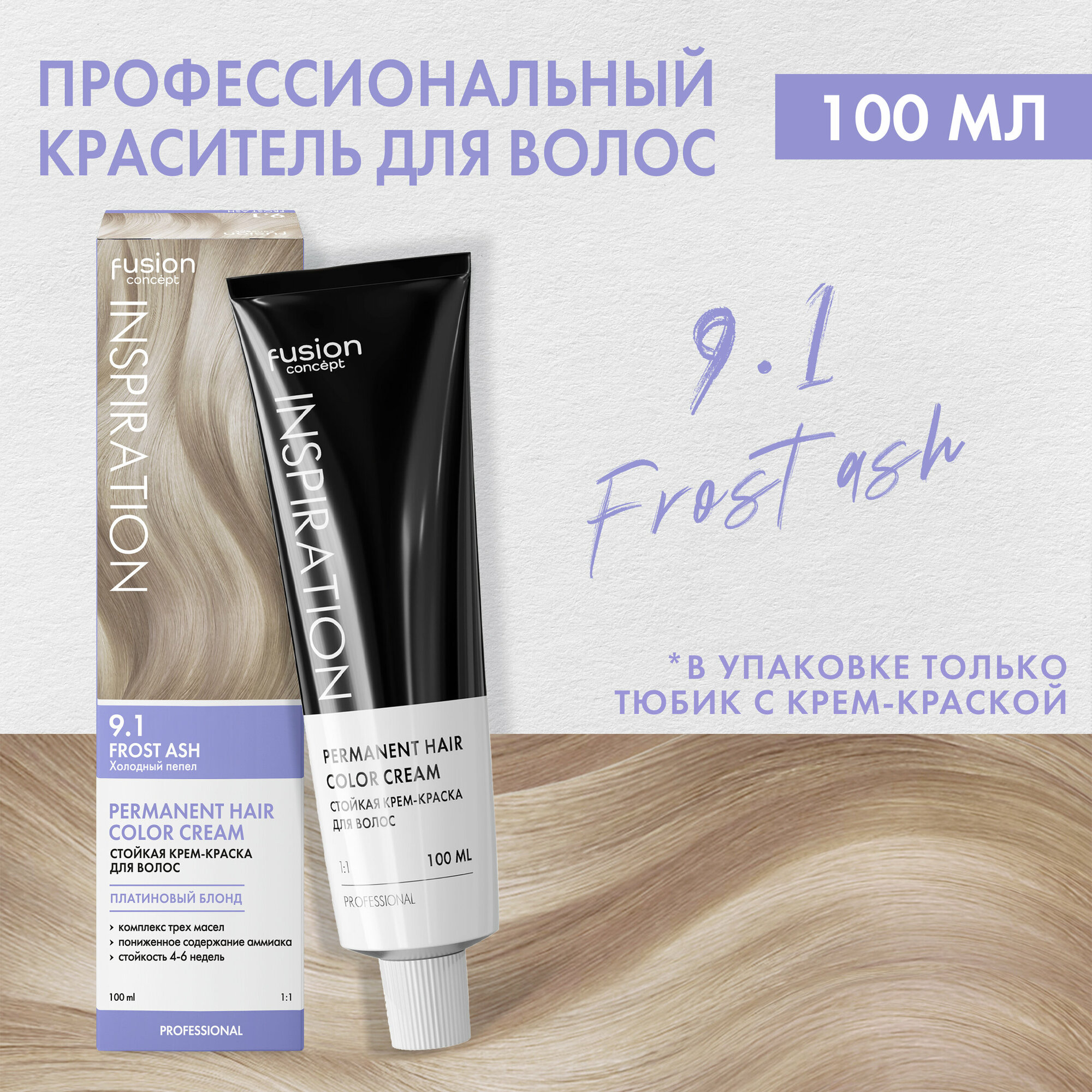 Крем-краска стойкая для волос Concept Fusion 9.1 Fusion Холодный пепел Frost Ash 100 мл