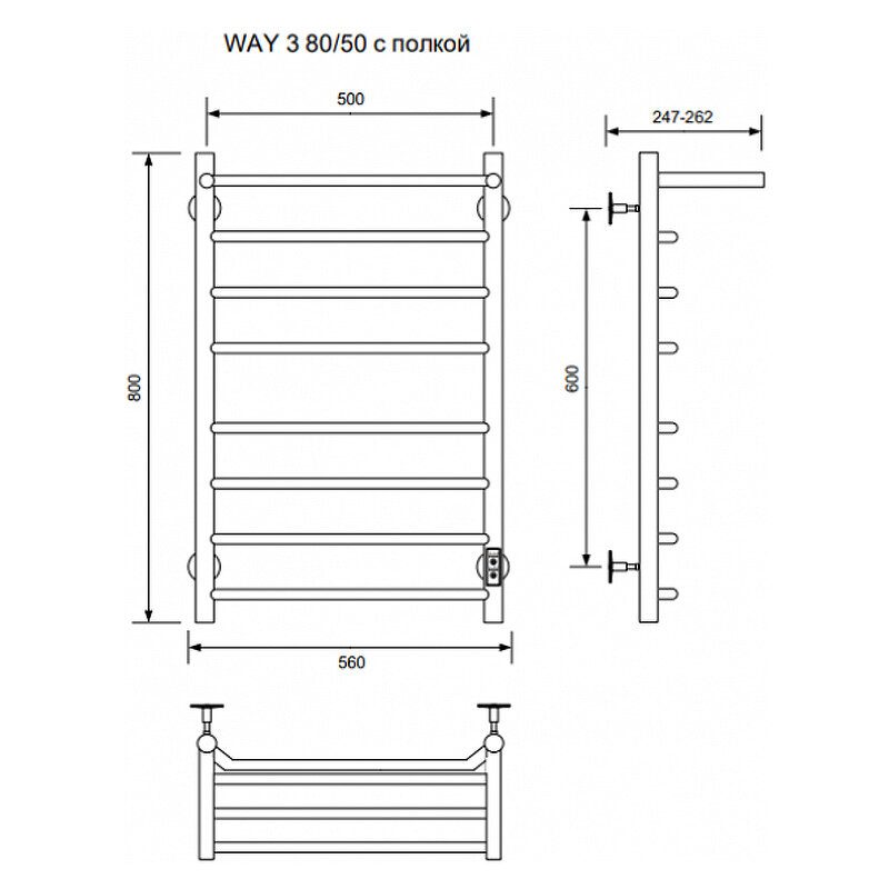 Полотенцесушитель электрический Ника Way 3 80/50 с полкой матовый белый RAL9016 WAY-3 80/50 с/п бел U