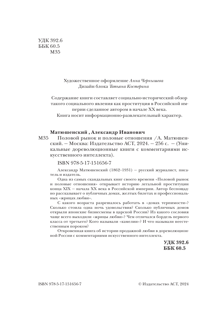 Откровенная книга об истории продажной любви в дореволюционной России с комментариями искусственного интеллекта.