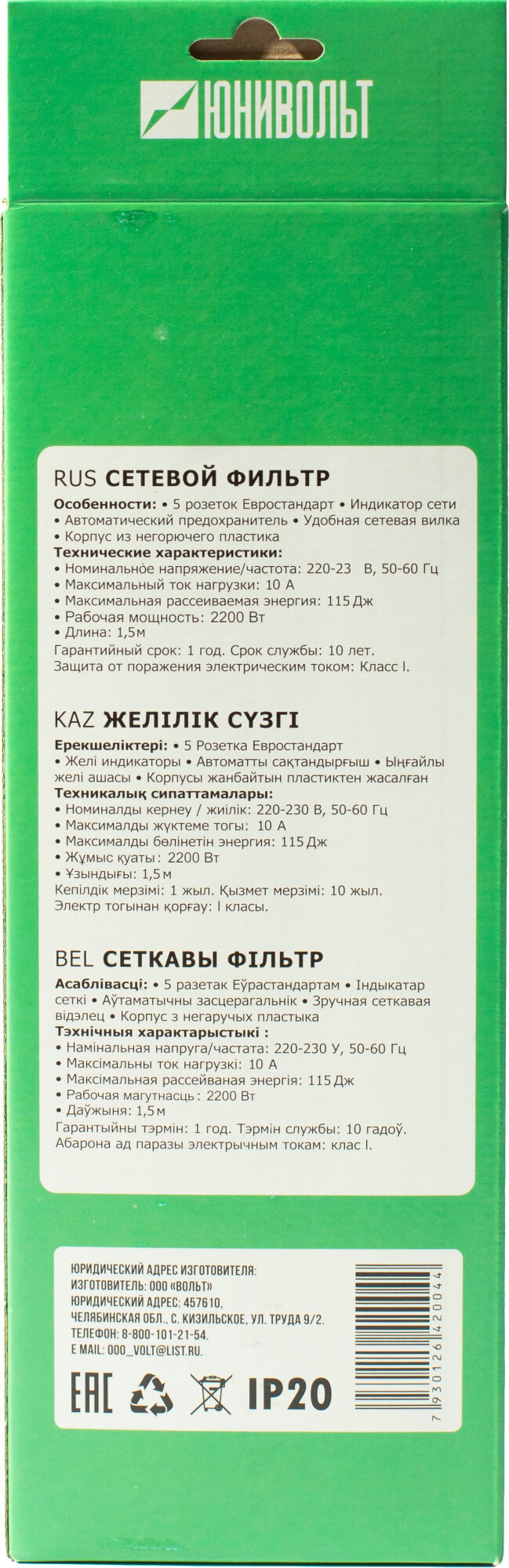 Производитель: ЮНИВОЛЬТ