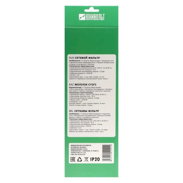 Сетевой фильтр Юнивольт 00-00000389