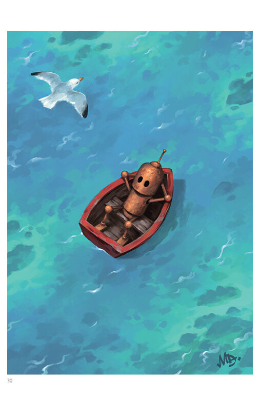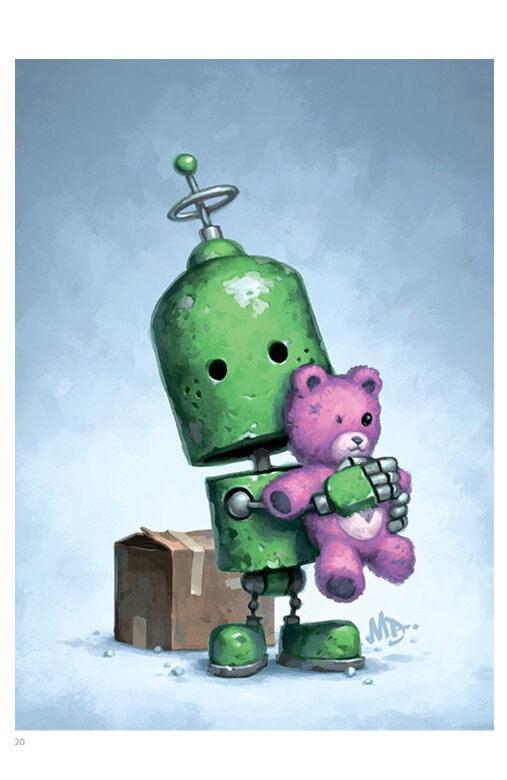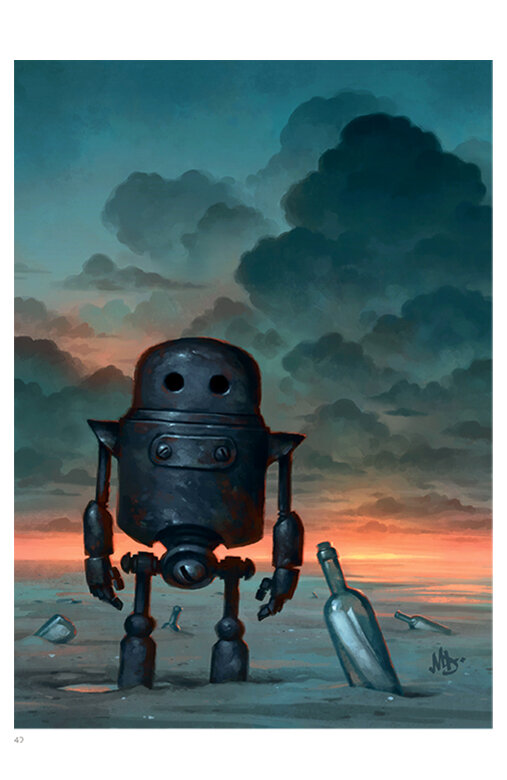 В удивительном мире Мэтта Диксона нет людей, но это не значит, что мир этот бесчеловечен. Его трогательные роботы улыбаются и грустят, лазают через заборы, радуются подаркам, пытаются качаться на качелях, спускаются на морское дно и забираются на крыши опустевшего города.