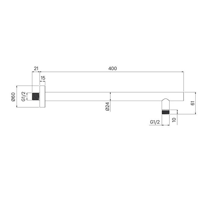 Хромированный Г-образный настенный кронштейн для верхней душевой лейки. Круглое сечение, длина 400 мм. Совместим с любыми хромированными верхними лейками IDDIS® с подключением G 1/2, а также с лейками других производителей. • Надежно зафиксирует лейку в необходимом положении, позволяя насладиться тропическим душем. Место крепления кронштейна скрыто круглым декоративным отражателем, что обеспечивает привлекательный внешний вид всей конструкции.• Кронштейн прослужит долго благодаря корпусу из прочной латуни, стойкой к коррозии, резким изменениям давления и перепадам температуры воды. • Хромированное покрытие устойчиво к появлению царапин и потускнению (при должном уходе). На протяжении многих лет оно будет выглядеть как новое.Гарантия на душевые аксессуары IDDIS® – 3 года.(с) Авторский текст, август 2023 г.
