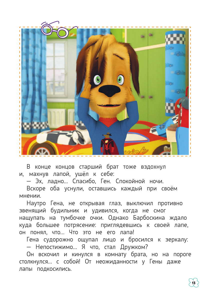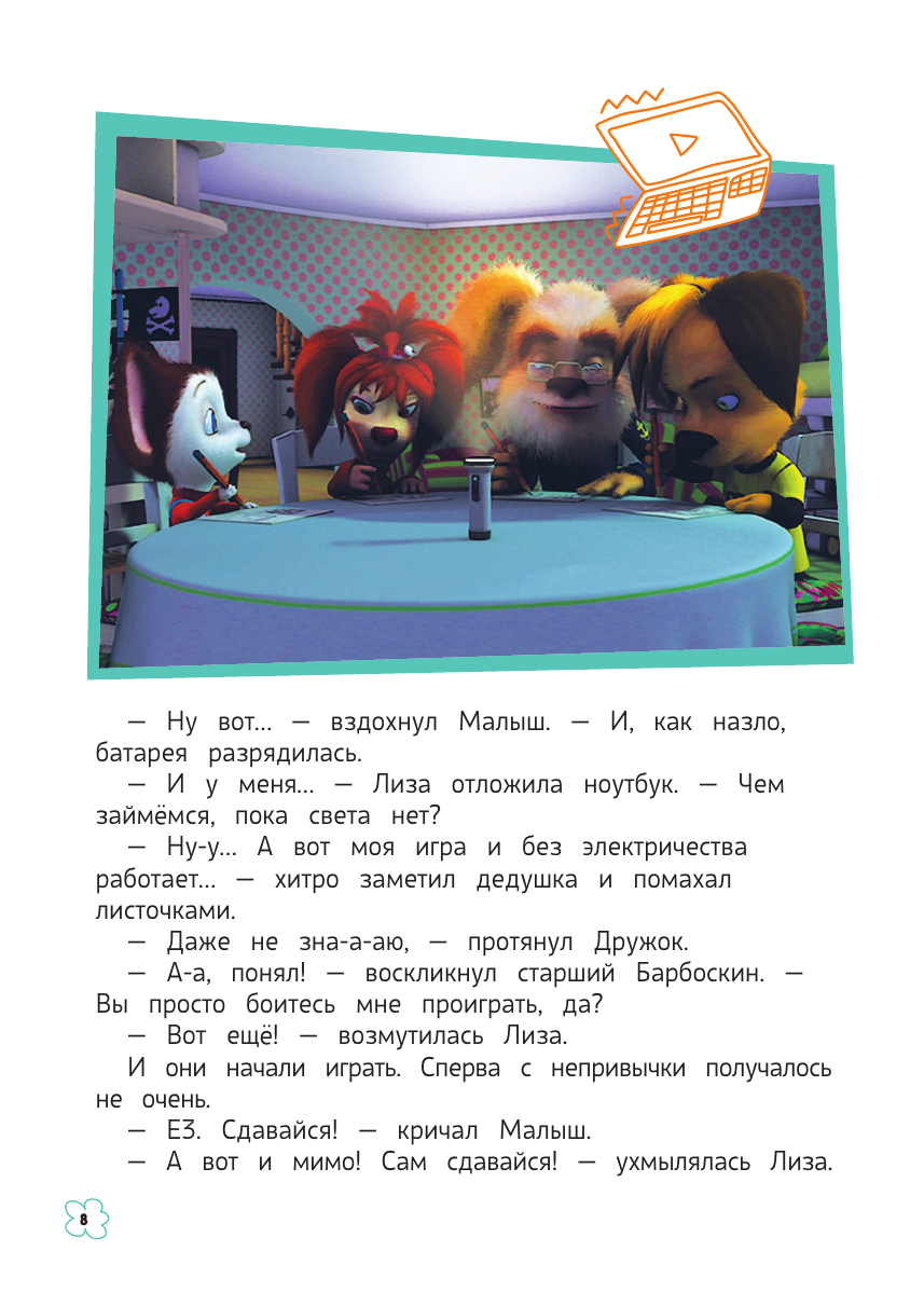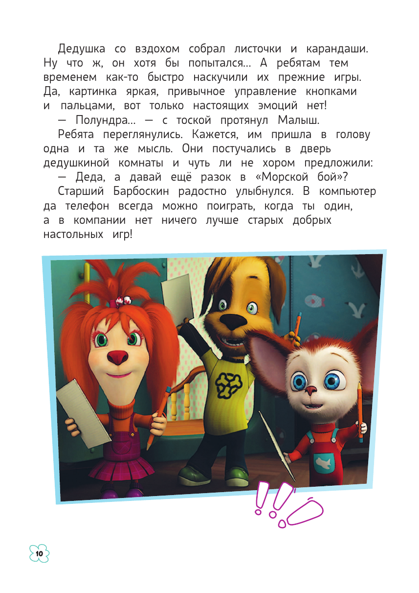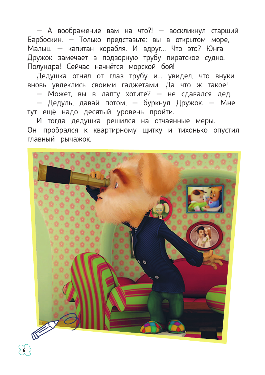 В этой книге юных поклонников мультсериала «Барбоскины» ждут новые приключения любимых героев - Малыша, Лизы, Розы, Дружка и Гены, а также их родственников и друзей. Красочные иллюстрации, прекрасно дополняющие сказку, помогут читателям погрузиться в мир любимого мультсериала.