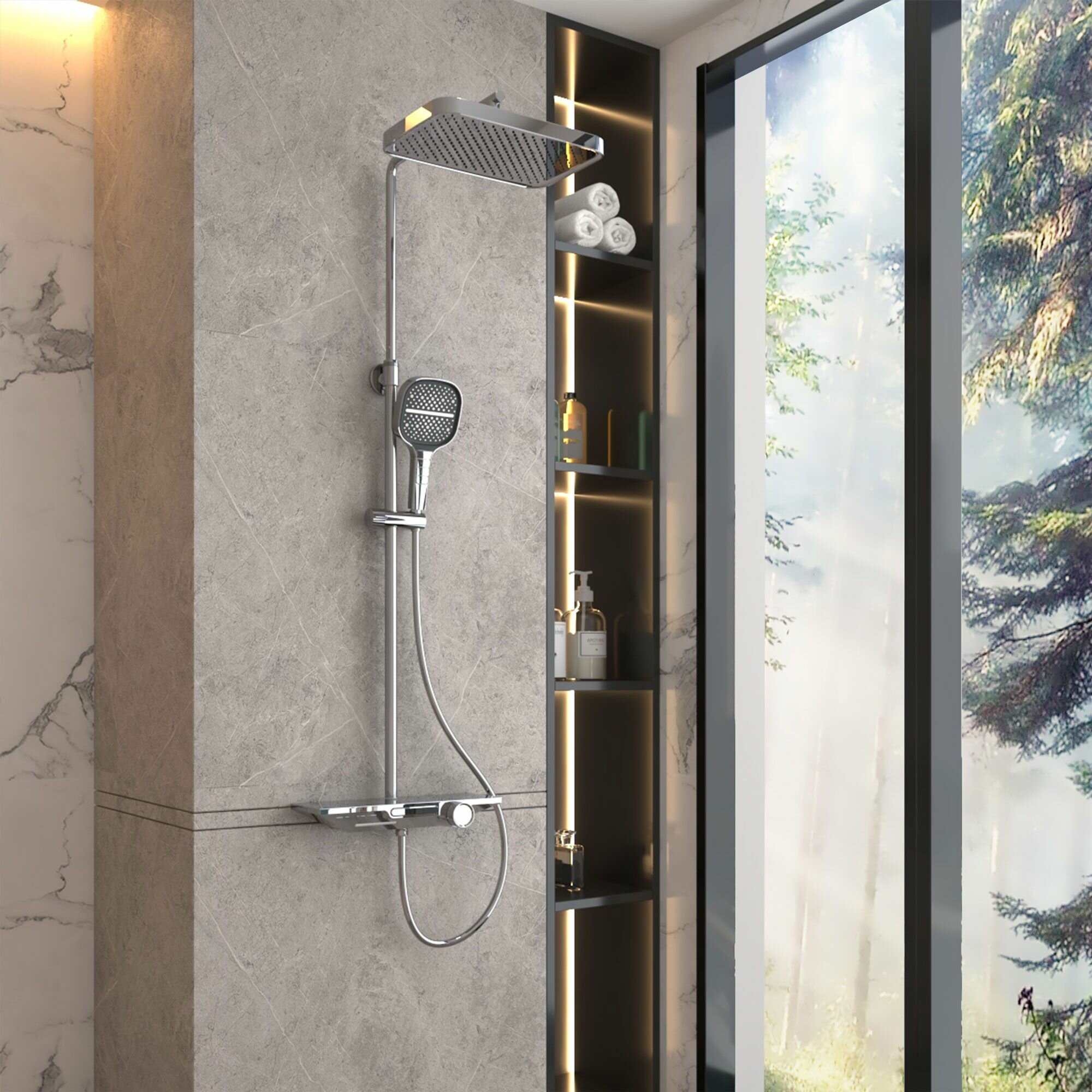 - Регулируемая по высоте душевая штанга и держатель ручного душа.