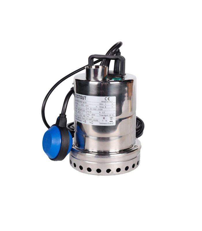 Насос дренажный h(нап)-8м, Q-9м3/ч, 250Вт. корп. нерж. G-1.1/4”. Насосы используются в установках для осушения и дренажа. Основными сферами применения являются: откачивание воды из затапливаемых подвальных помещений (дренаж гаражей, автостоянок, тоннелей и т. д.), откачивание хозяйственно-бытовых стоков, откачивание воды из рек и прудов, откачивание воды, возникшей в результате аварийных и стихийных бедствий, аэрация прудов, циркуляция воды в искусственных водоемах, системы дренажа в сложных технических устройствах и сооружениях. Насосы малошумны, оборудованы поплавковым выключателем для автоматического отключения при недостаточном уровне воды. Дренажные насосы STOUT оборудованы встроенным конденсатором с характеристиками, соответствующими мощности встроенного электродвигателя, а в обмотках статора установлена тепловая защита, отключающая электродвигатель при повышении температуры обмоток выше допустимого значения. Продолжительный срок эксплуатации насосов обеспечивается за счет применения уплотнений со смазкой в масляной камере и подшипников, не нуждающихся в смазке весь срок службы. Жидкость, содержащаяся в смазочной камере и предназначенная для смазки уплотнений, не токсична, но если устройство протечет, она может изменить характеристики воды (касается чистой воды).