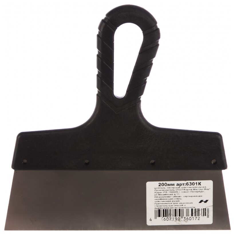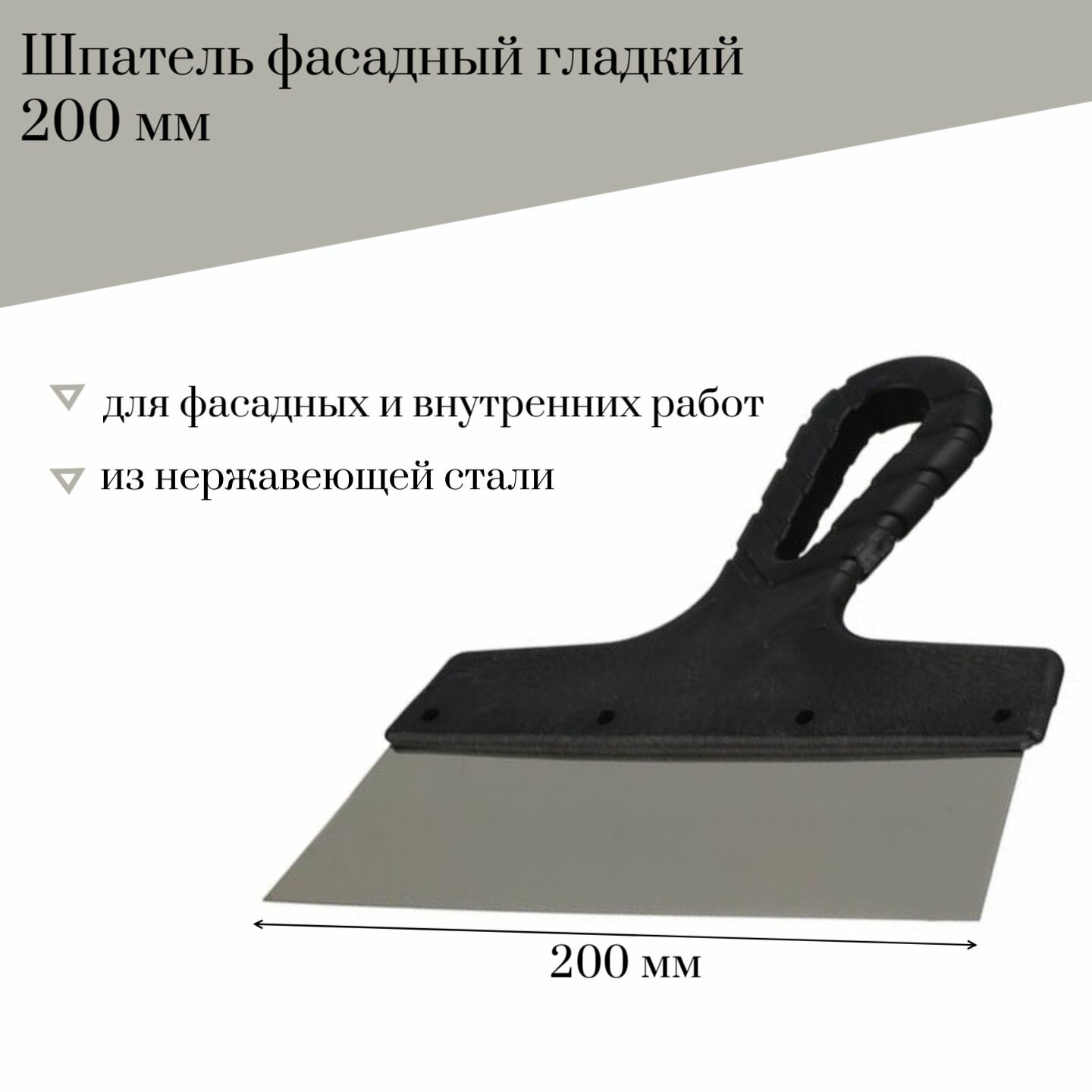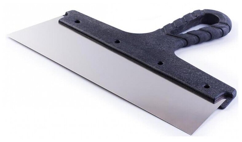 Предназначен для фасадных и внутренних работ, выравнивания поверхностей при помощи строительных смесей. Материал полотна выполнен из нержавеющей стали, ручка шпателя из высокачественного пластика.