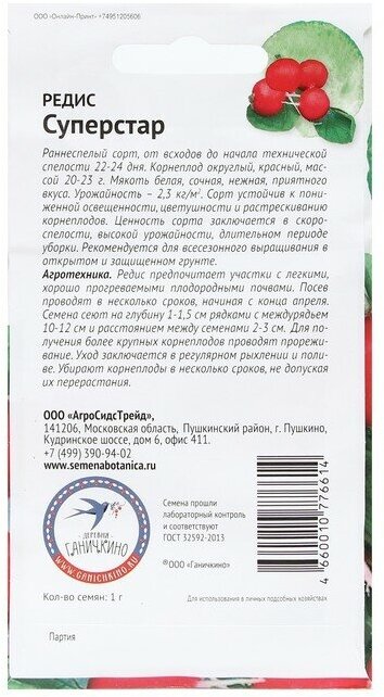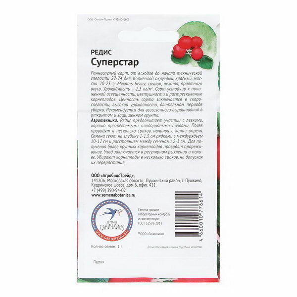 Сервис сравнения цен СкидкаГИД предлагает сравнить цены на товар «Редис Суперстар 1 г СЕМЕНА ОТ ОКТЯБРИНЫ ГАНИЧКИНОЙ»